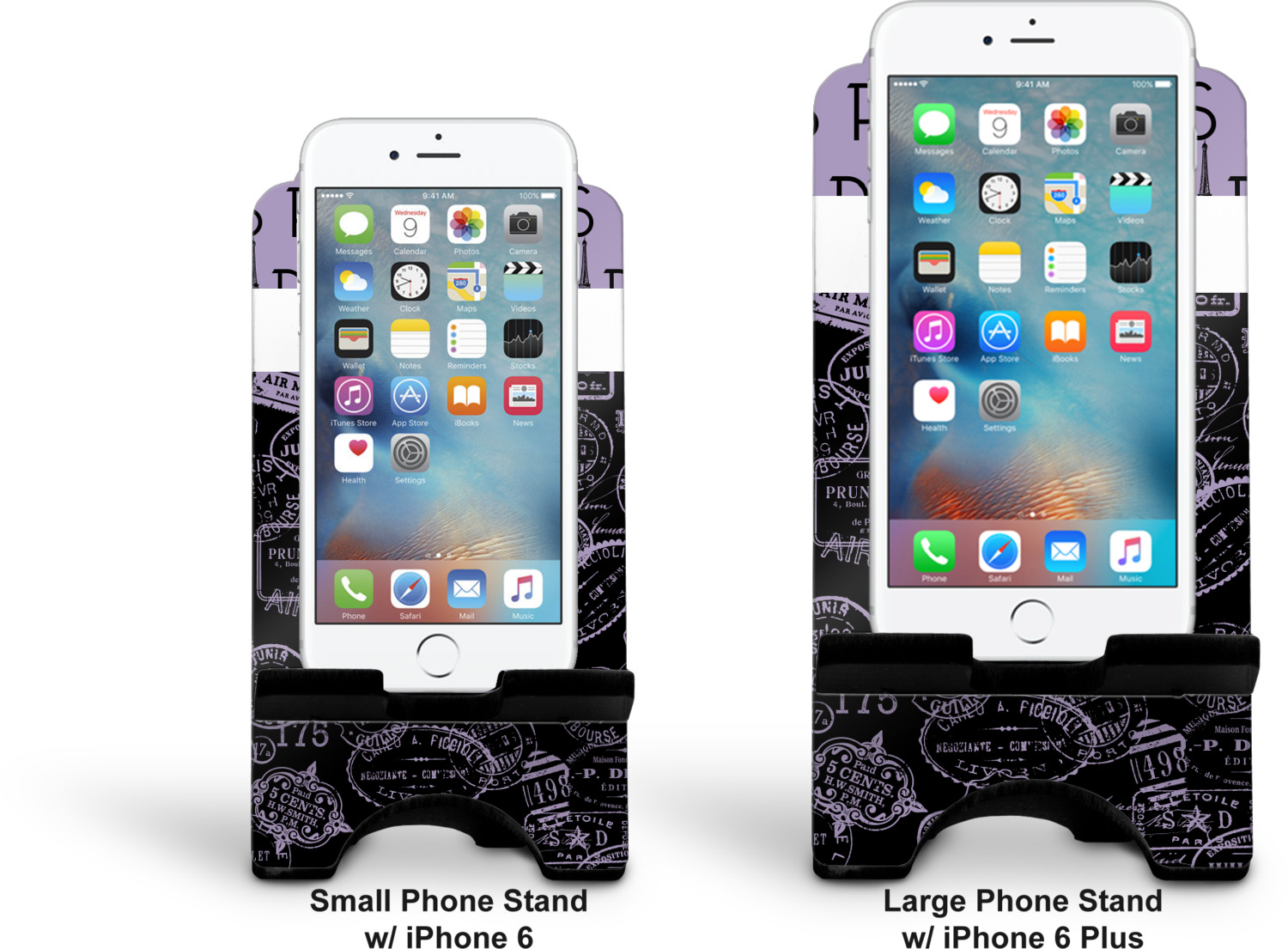 To meet your needs, we offer four variations of this IPhone stand. The backboard of the first version is shaped as a plain, yet sleek rectangle, and is available in two sizes. Our smaller size is approximately 4 by 3.25 by 7 inches, while the larger model is 4 by 3.77 by 8.5 inches. Alongside this model, we also provide you with a more decorative option. The upper part of our second version features a curved edge, for a classy, suave appearance. This phone holder is also sold in two sizes: a smaller version, which is 4 by 3.25 by 7 inches, and our larger model, which is 4 by 3.77 by 8.5 inches. Both models will support large phones, but the larger model is better if you wish to proudly display your personalized design.