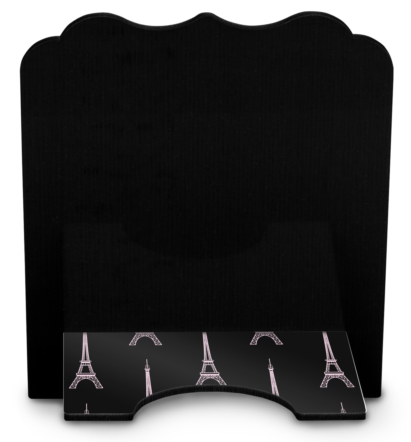 The stand is comprised of two hardboard pieces that fit snugly together and stabilize one another. The bottom part of the iPad stand supports your tablet, and has space for your tablets charger while in use. At 9.25" x 11.5", this tablet mount can support a device between the sizes of the iPad Pro and the iPad Mini 2. The uppermost part of the stand features a decorative, curved edge for a classy, suave appearance. We print your customization atop the face of the stand, in vibrant color. The remaining sides are colored a sleek black.