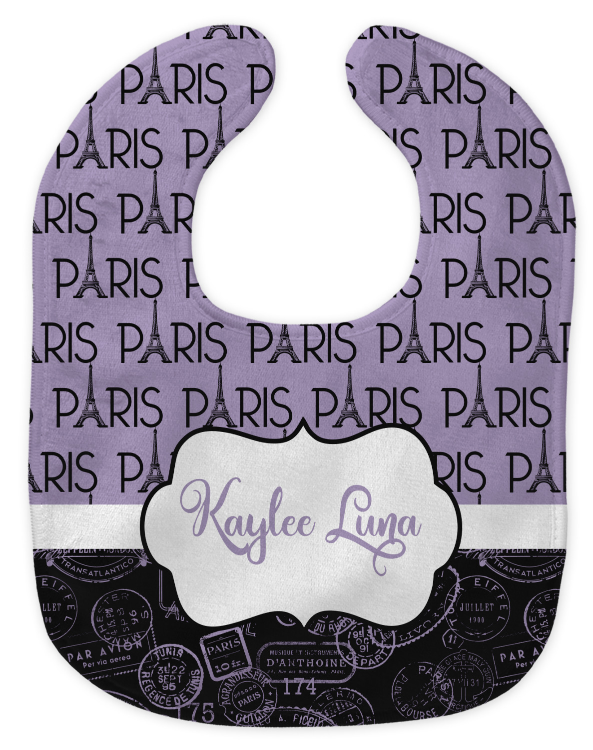 Made of soft polyester, each customizable bib hugs comfortably around the neck to catch every drip and drool. Each bib design is printed with baby-safe ink and finished with a secure stitch pattern and velcro clasp. We carry two customizable bib styles -Microfiber Velour and Jersey Knit.