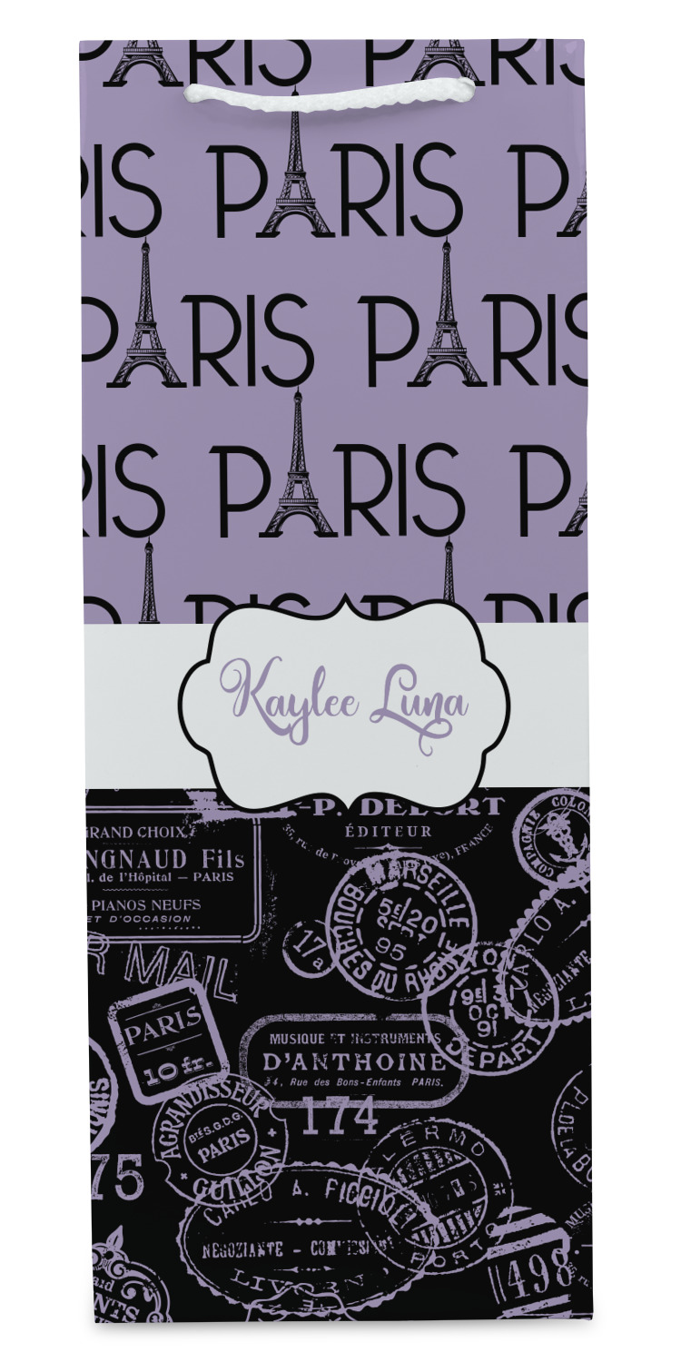 Our wine bags are printed on premium paper. The bags are then cut, scored and folded. The handles and cardstock base it attached. These custom wine bags are printed and made in the USA.