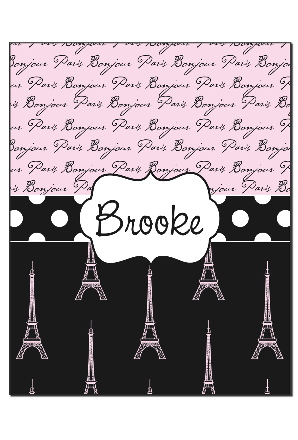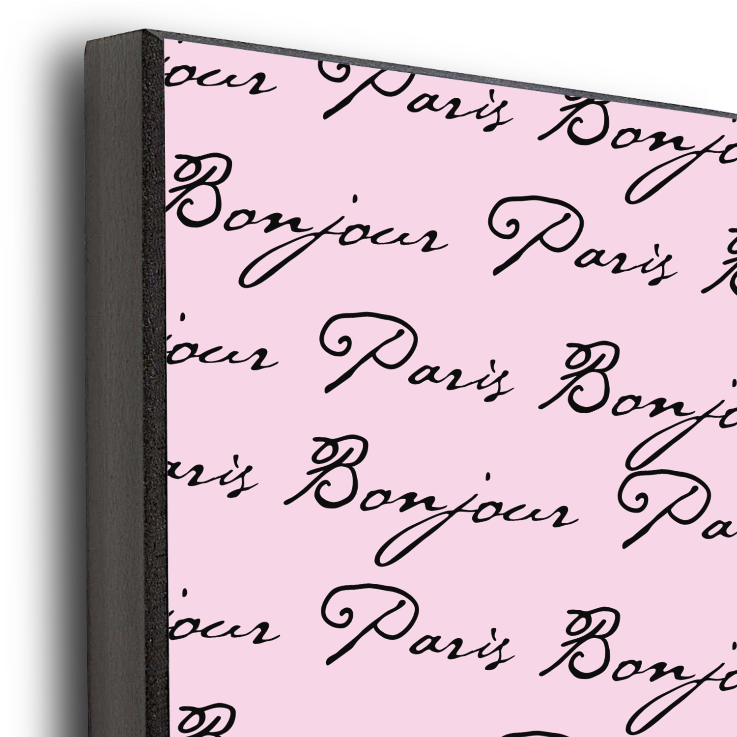 Ooh La La! Add a bit of Parisian elegance to your decor with this gorgeous French Eiffel Tower design. The top of the design features a delicate, soft pink background to feature the words "Bonjour" & "Paris" written in black graphic text. The bottom half of the design a black backdrop is use so that the iconic Eiffel Tower in pink come to life.