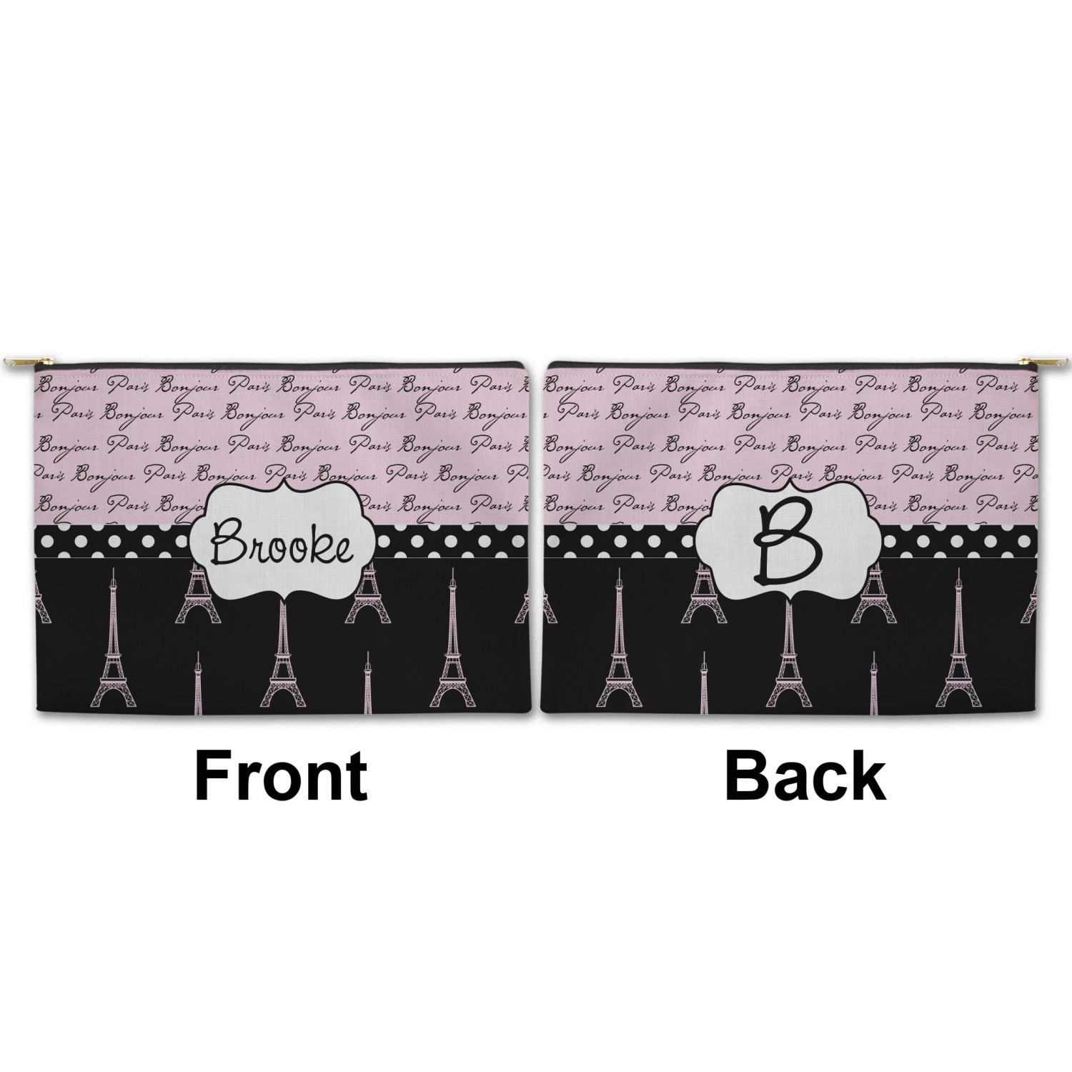 You can design both the front and the back of the pouch - same design, two complementary designs or two totally different designs - the choice is yours! We offer many different personalization styles i.e. name, name & initial, monograms - so the choice to personalize is also yours.