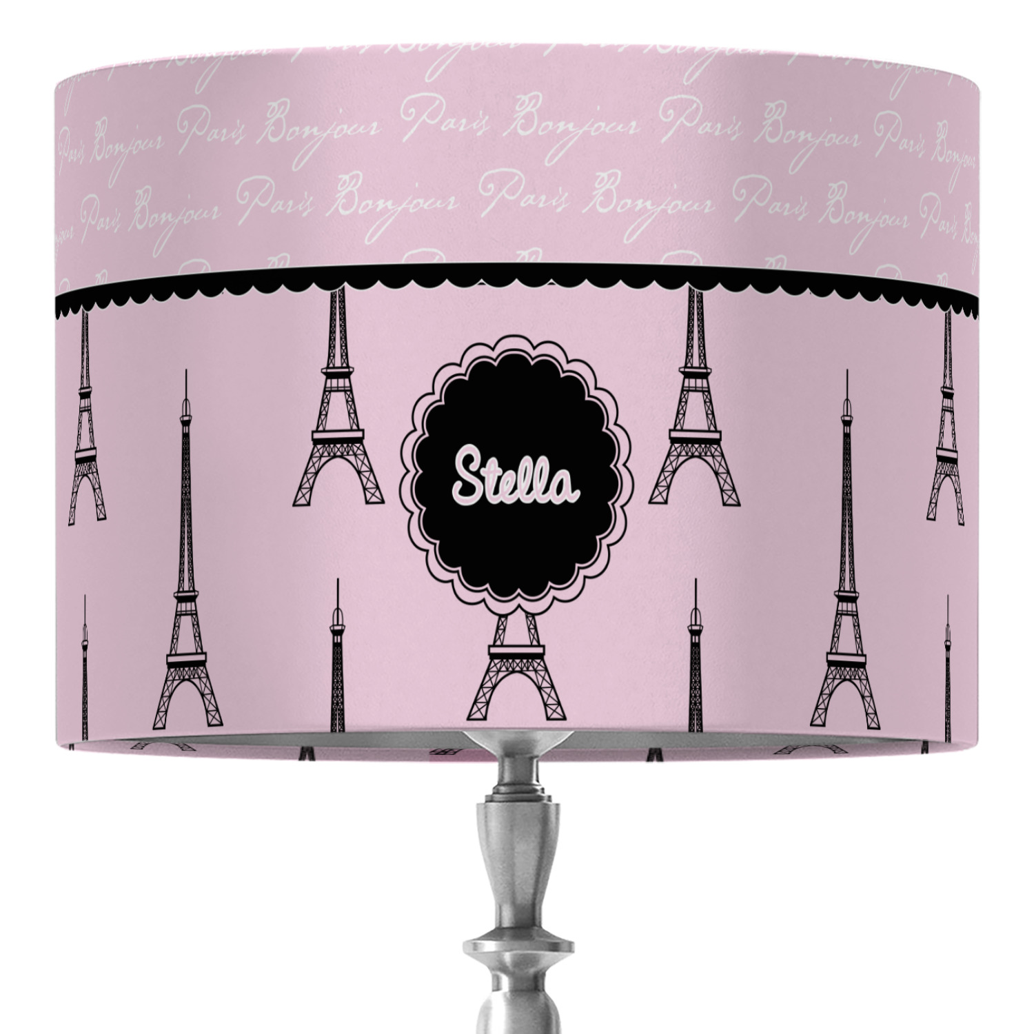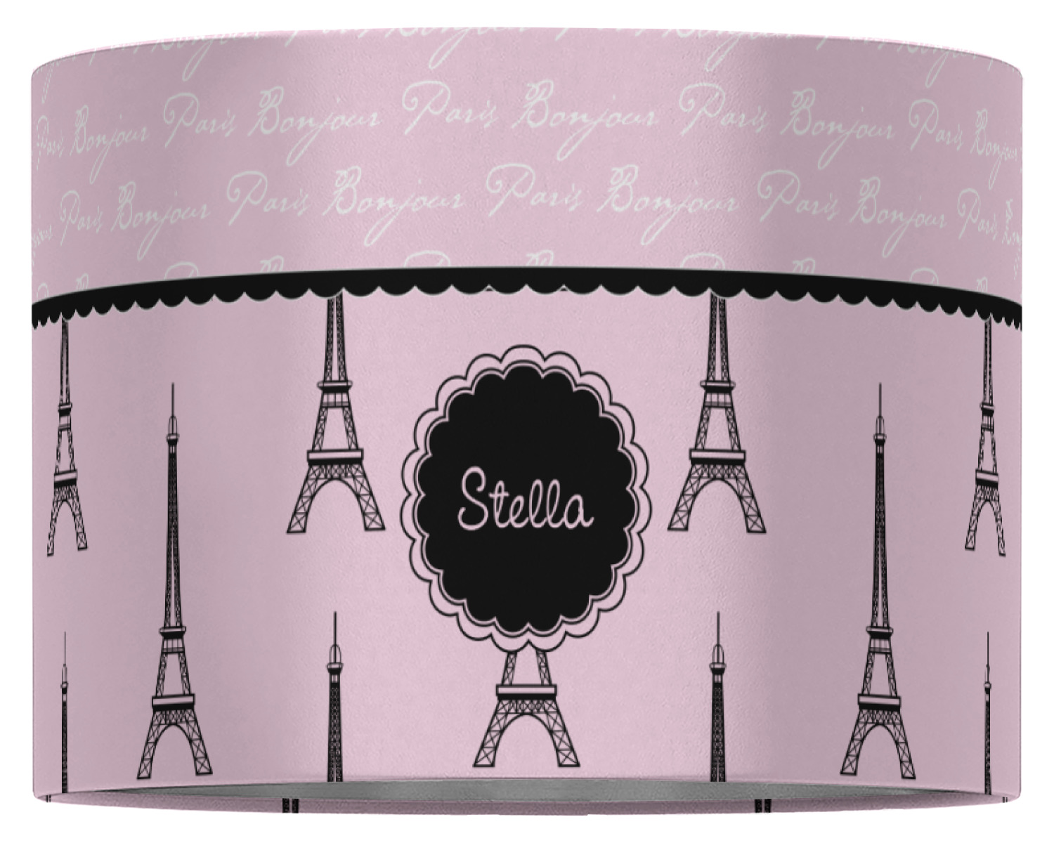 "Bonjour, Paris!" will be the first words spoken when you see this beautiful French inspired design. You will bring a bit of Parisian elegance to your decor when choosing this gorgeous French Eiffel Tower design set on a pretty pink backdrop. The beautiful black scalloped label on the whimsical pink highlights the personalization of your choice.