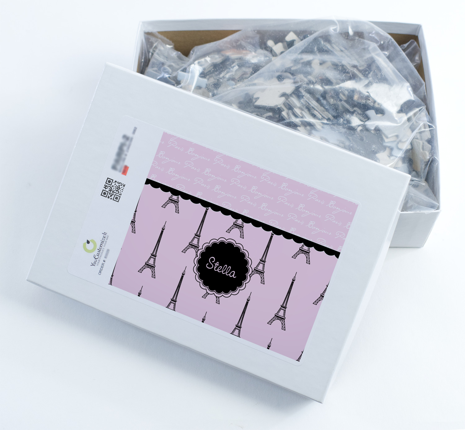 Depending on the look you are trying to achieve, you can add; a thematic pattern or background, with a photo in a frame and text or personalization to your puzzle. Basically if you can imagine it, you can design it!