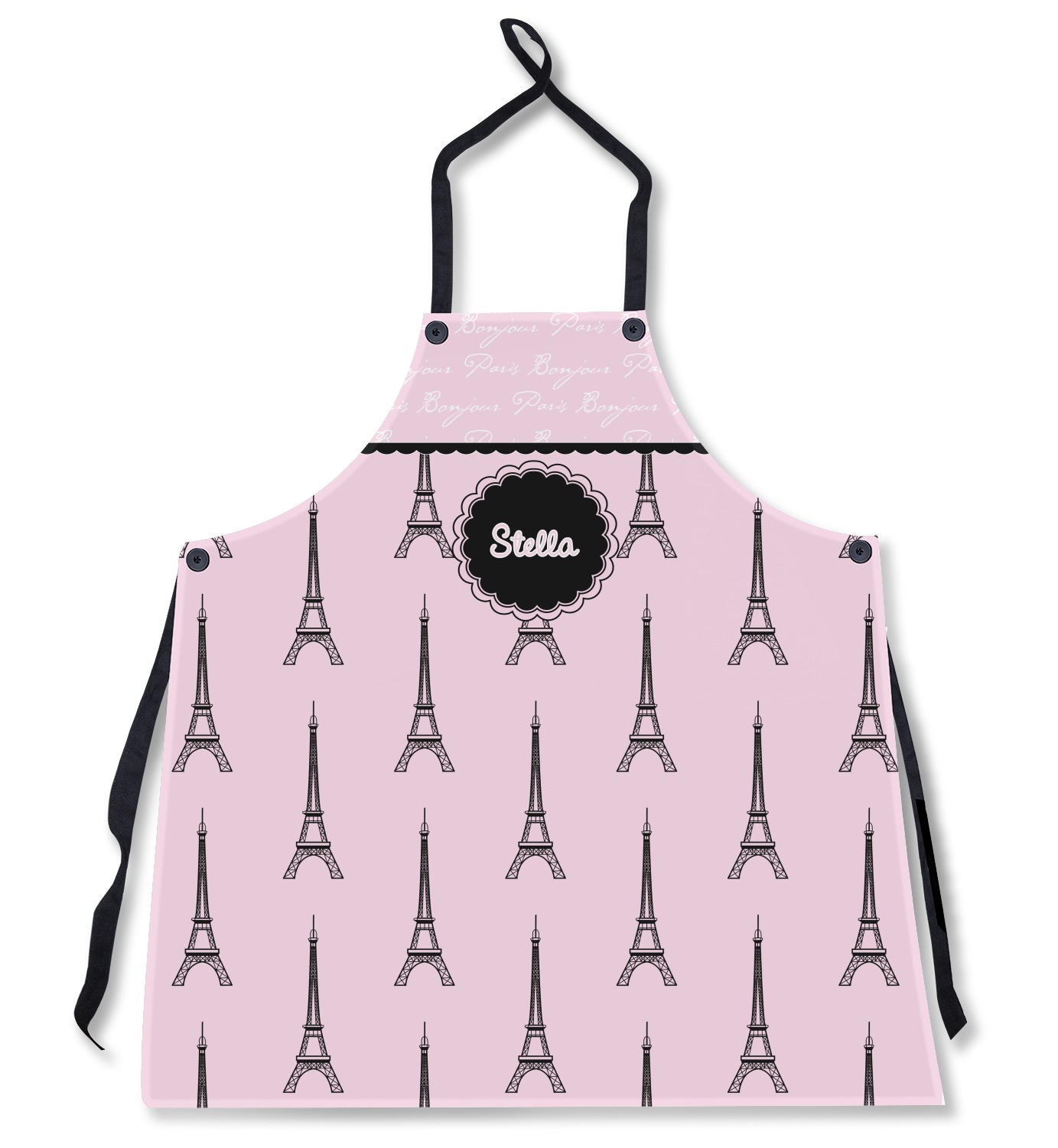 "Bonjour, Paris!" will be the first words spoken when you see this beautiful French inspired design. You will bring a bit of Parisian elegance to your decor when choosing this gorgeous French Eiffel Tower design set on a pretty pink backdrop. The beautiful black scalloped label on the whimsical pink highlights the personalization of your choice.