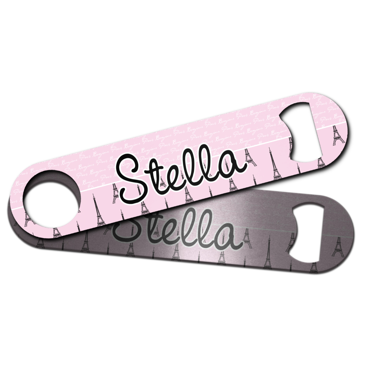 Stop struggling with the caps or your bottled beverages by purchasing one of our personalized bottle openers! These wrench-like custom bar blades are built to last. Customize one for your home's bar, or as a practical gift for a loved one!