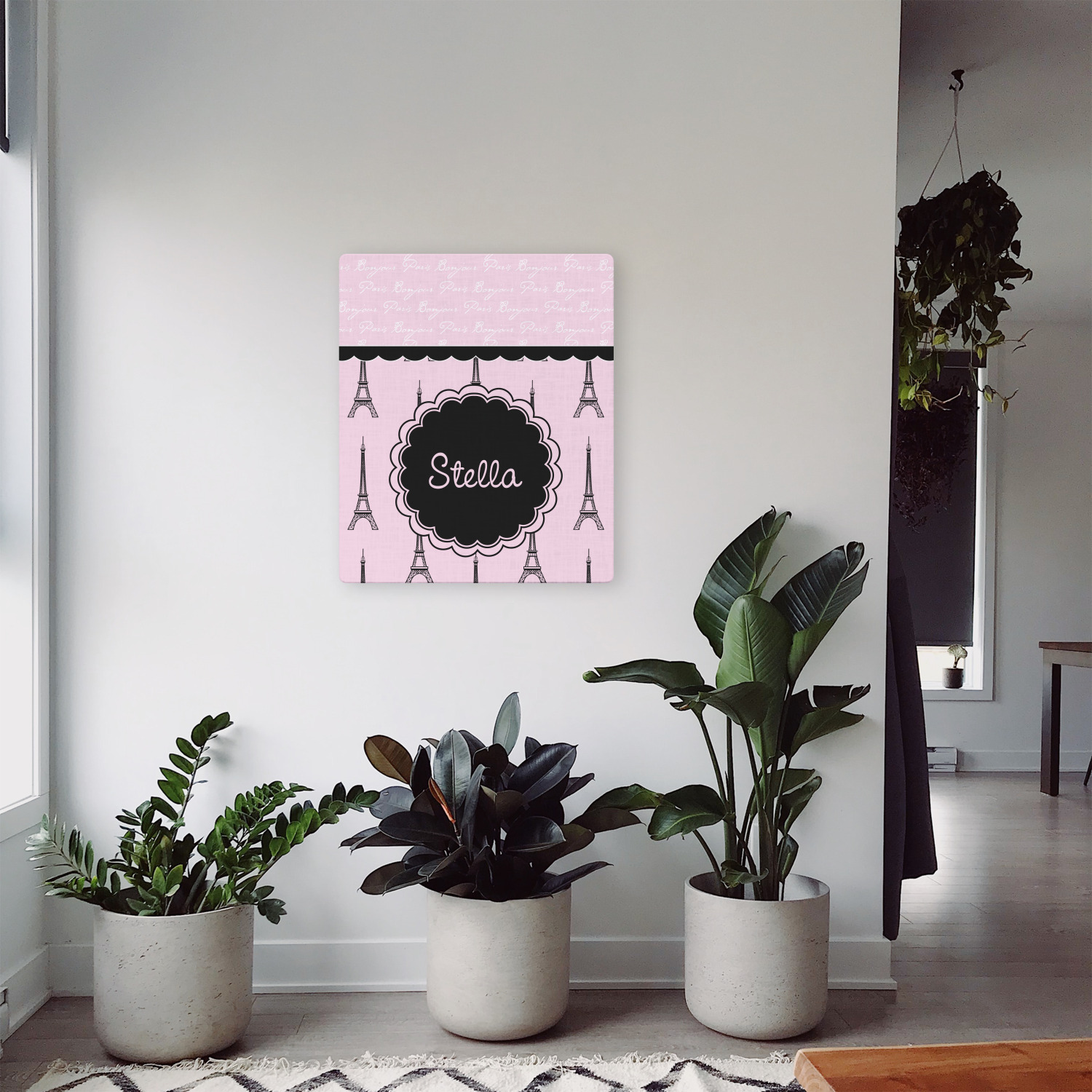 "Bonjour, Paris!" will be the first words spoken when you see this beautiful French inspired design. You will bring a bit of Parisian elegance to your decor when choosing this gorgeous French Eiffel Tower design set on a pretty pink backdrop. The beautiful black scalloped label on the whimsical pink highlights the personalization of your choice.