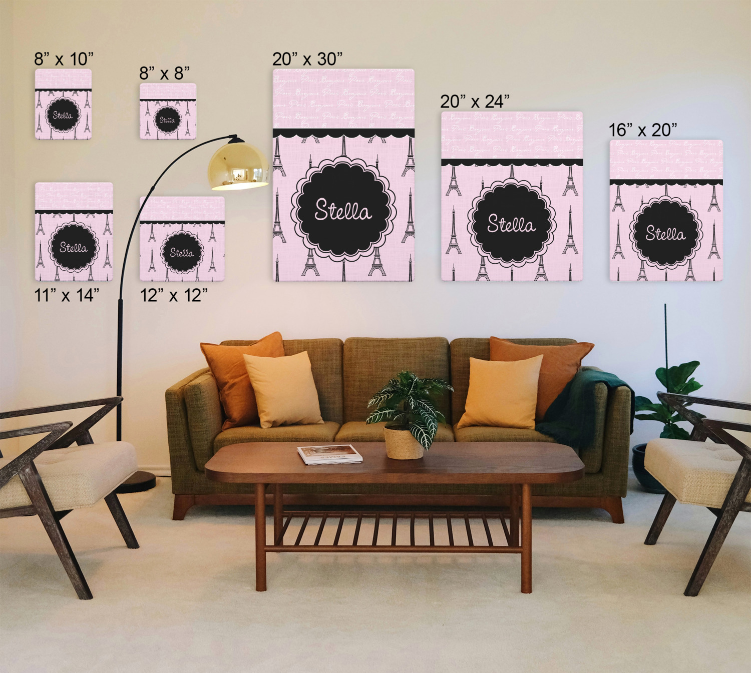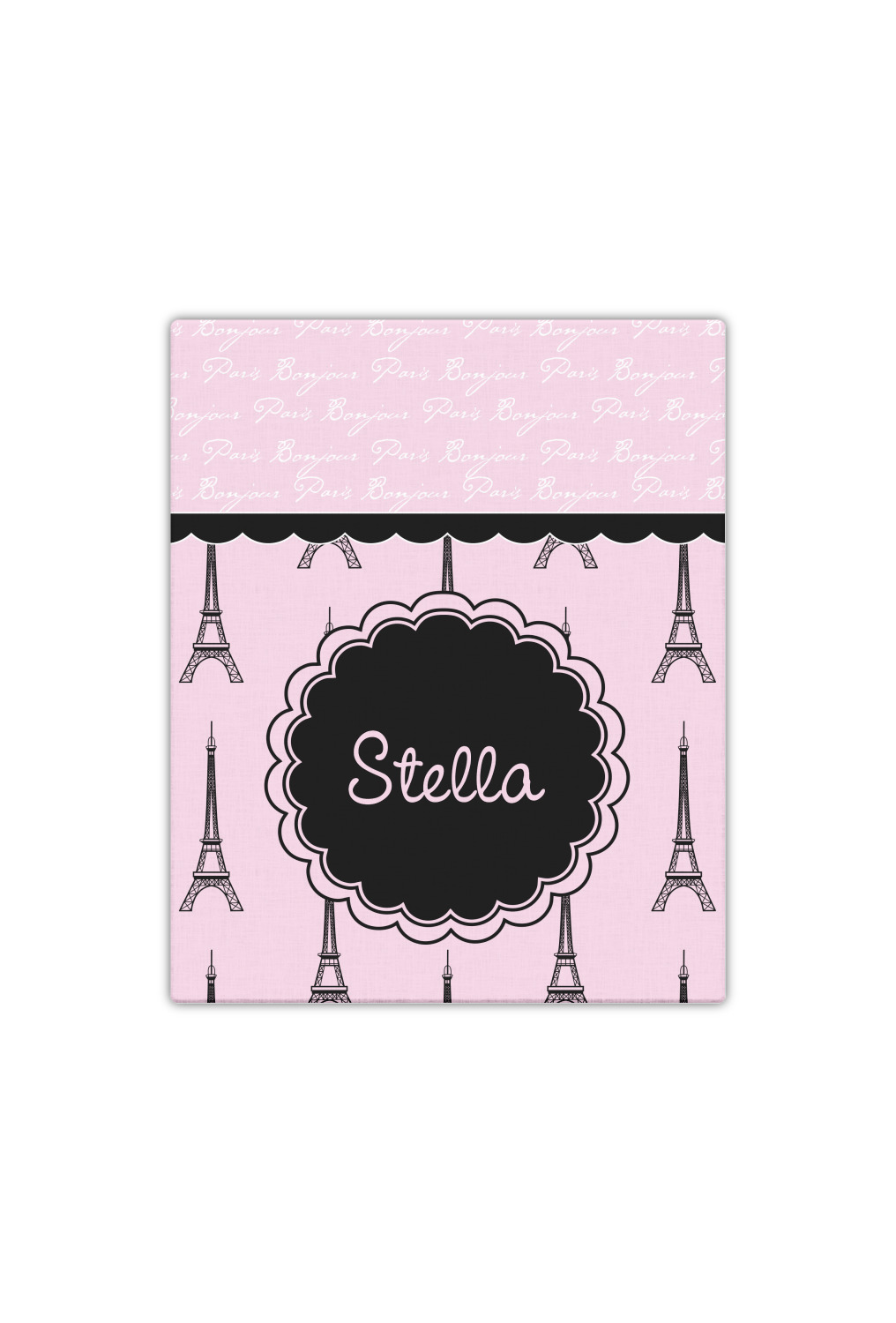 "Bonjour, Paris!" will be the first words spoken when you see this beautiful French inspired design. You will bring a bit of Parisian elegance to your decor when choosing this gorgeous French Eiffel Tower design set on a pretty pink backdrop. The beautiful black scalloped label on the whimsical pink highlights the personalization of your choice.