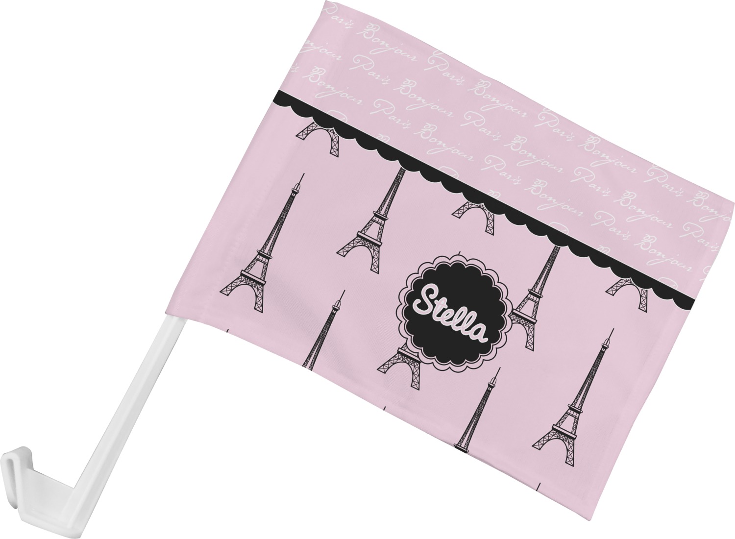 Our personalized flags are made from a durable, yet lightweight cloth that will proudly bear your logo or design of choice, while withstanding the outside elements. We have two size options - 8" x 11" and 11" x 15". Both come with a flag pole which includes a clip that secures the pole to the side window, whether it is rolled up or down. The flags are printed on both sides to display your design from all directions.