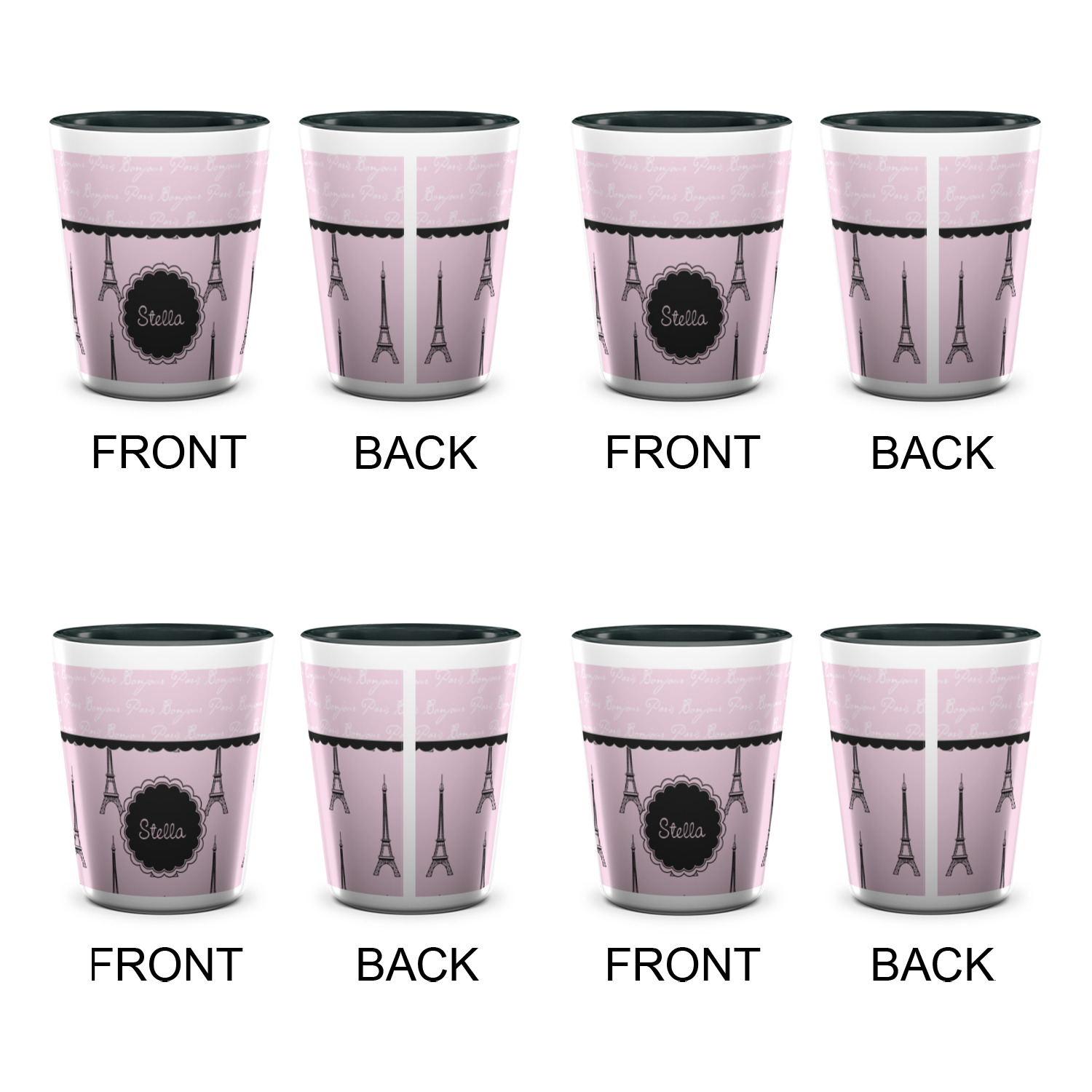 Made from ceramic these shot glasses are printed in full color with the design of your choice. These are a standard 1.5oz size and stand 2.25" tall. Available in a full white ceramic or a two-tone with a black color inside the shot glass. Buy a single or a set of 4, all of which can be designed separately to get you just what you want and need.