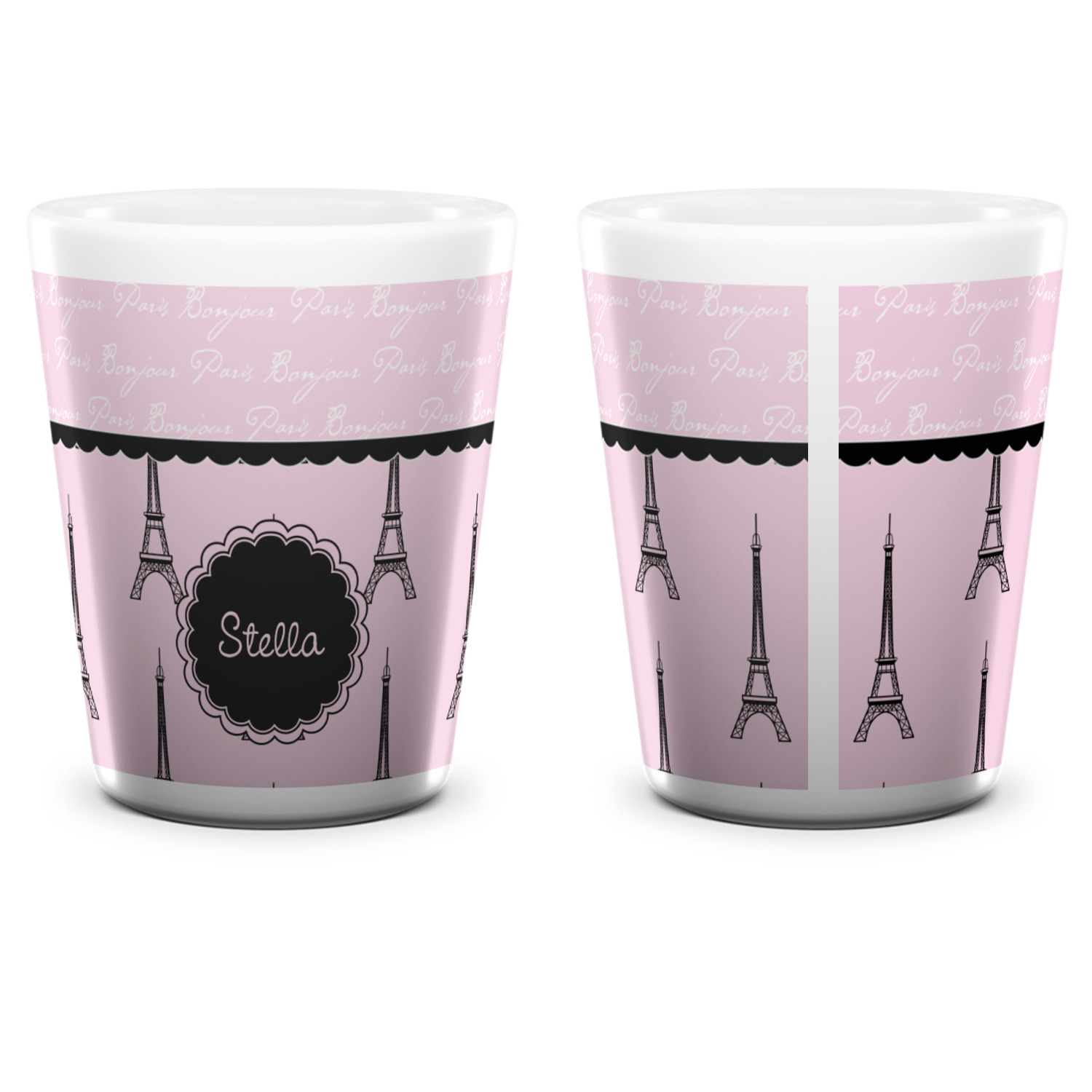 Made from ceramic these shot glasses are printed in full color with the design of your choice. These are a standard 1.5oz size and stand 2.25" tall. Available in a full white ceramic or a two-tone with a black color inside the shot glass. Buy a single or a set of 4, all of which can be designed separately to get you just what you want and need.
