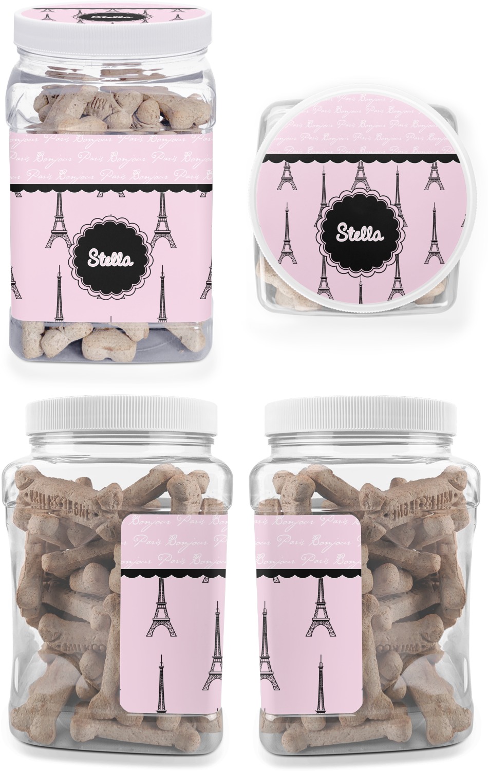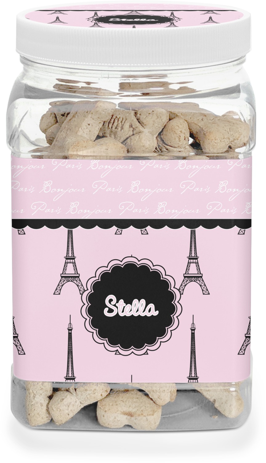 In the market for some other, cute pet supplies? Have a look at our Pet Accessories department, where you can customize a matching dog food bowl, dog food mat, or even a glass dog treat jar! Overjoyed with the idea of a customizable container? Explore the kitchen department within our Home and Garden category, where you can personalize snack containers for humans, as a gift, or just as a part of your kitchen decor!