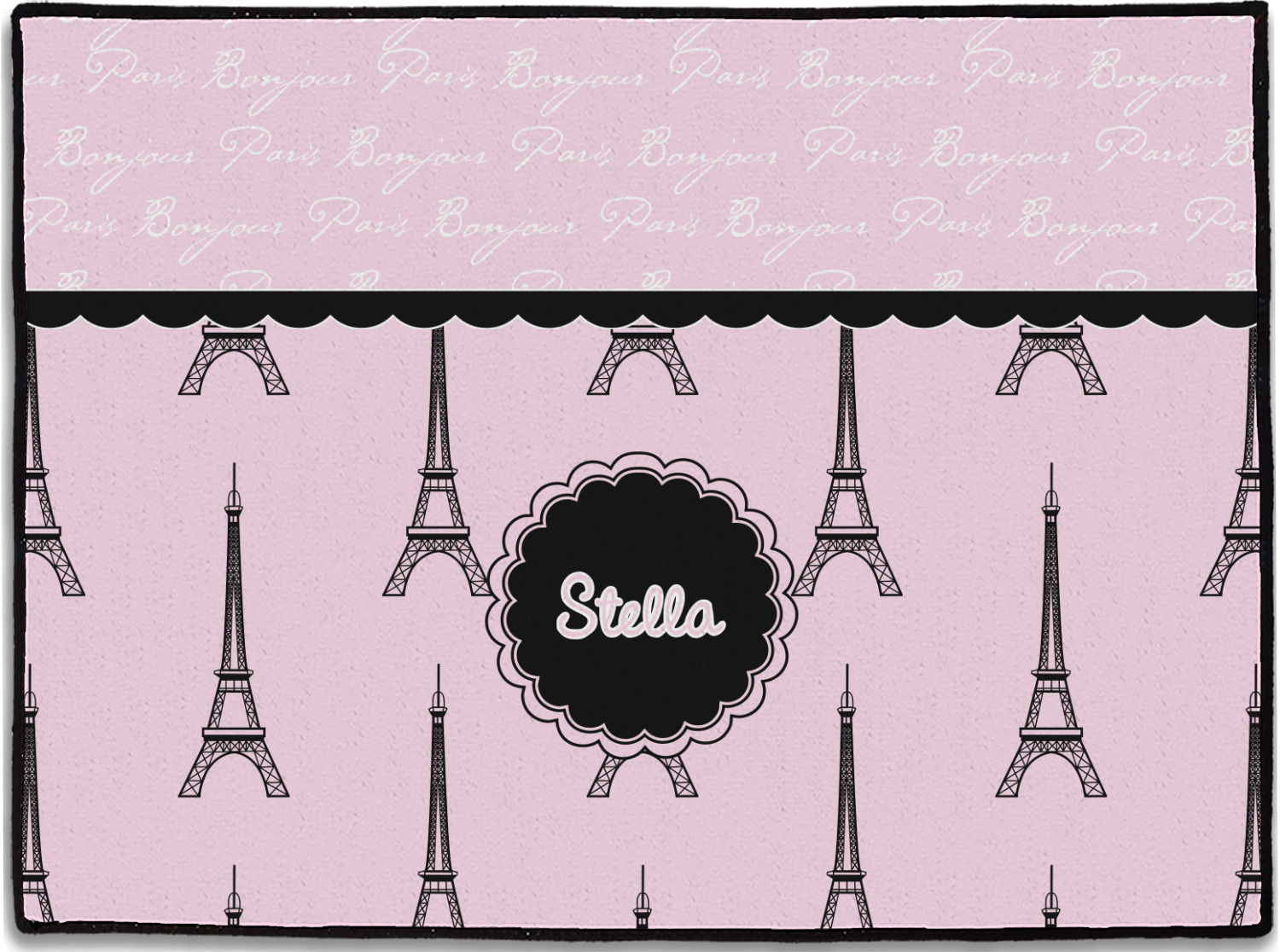 "Bonjour, Paris!" will be the first words spoken when you see this beautiful French inspired design. You will bring a bit of Parisian elegance to your decor when choosing this gorgeous French Eiffel Tower design set on a pretty pink backdrop. The beautiful black scalloped label on the whimsical pink highlights the personalization of your choice.