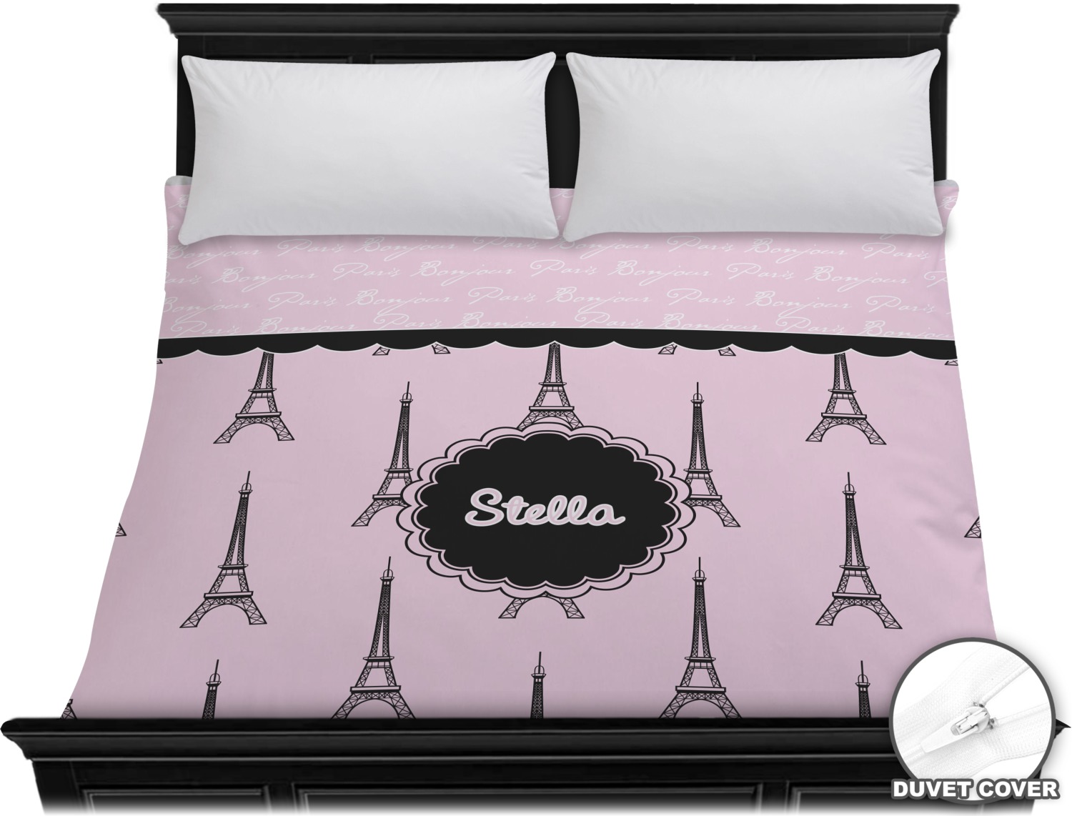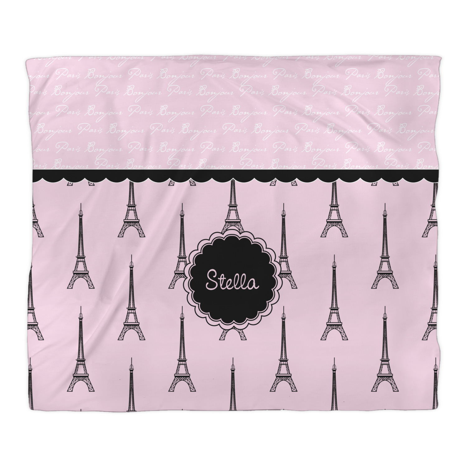 "Bonjour, Paris!" will be the first words spoken when you see this beautiful French inspired design. You will bring a bit of Parisian elegance to your decor when choosing this gorgeous French Eiffel Tower design set on a pretty pink backdrop. The beautiful black scalloped label on the whimsical pink highlights the personalization of your choice.