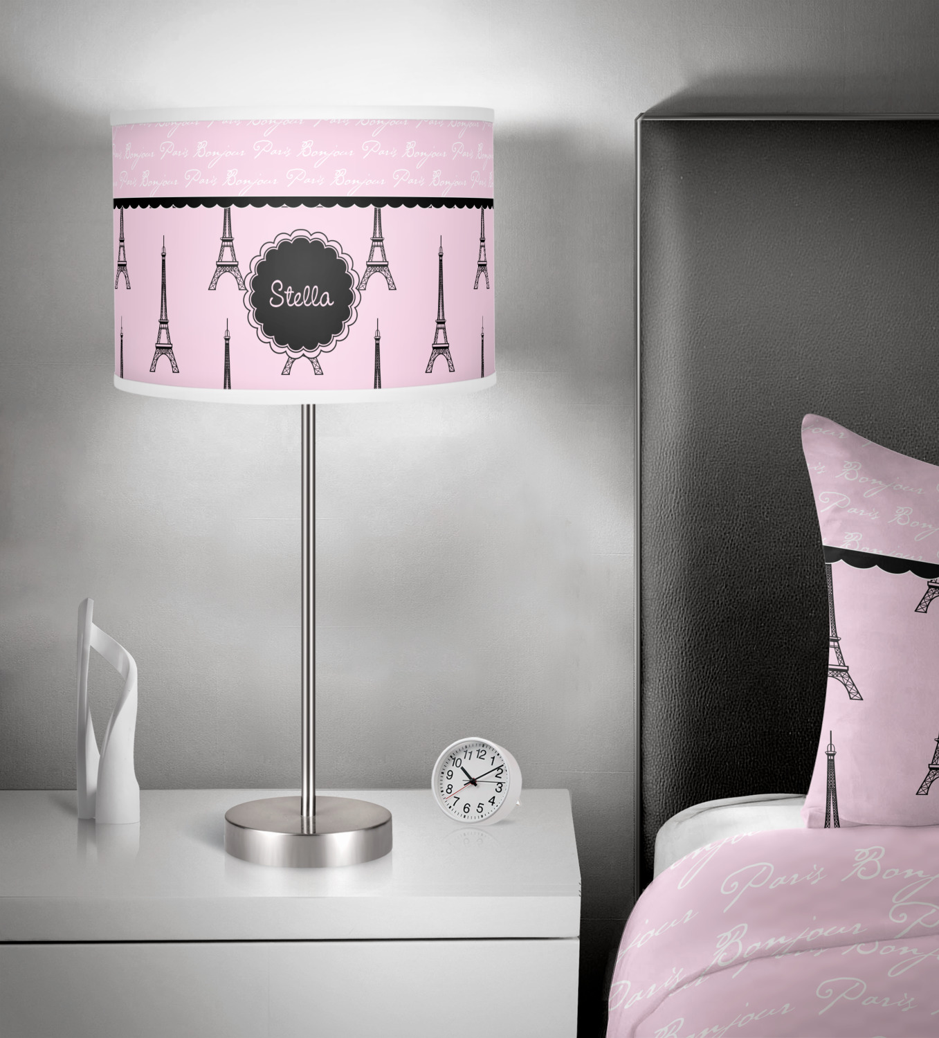 "Bonjour, Paris!" will be the first words spoken when you see this beautiful French inspired design. You will bring a bit of Parisian elegance to your decor when choosing this gorgeous French Eiffel Tower design set on a pretty pink backdrop. The beautiful black scalloped label on the whimsical pink highlights the personalization of your choice.