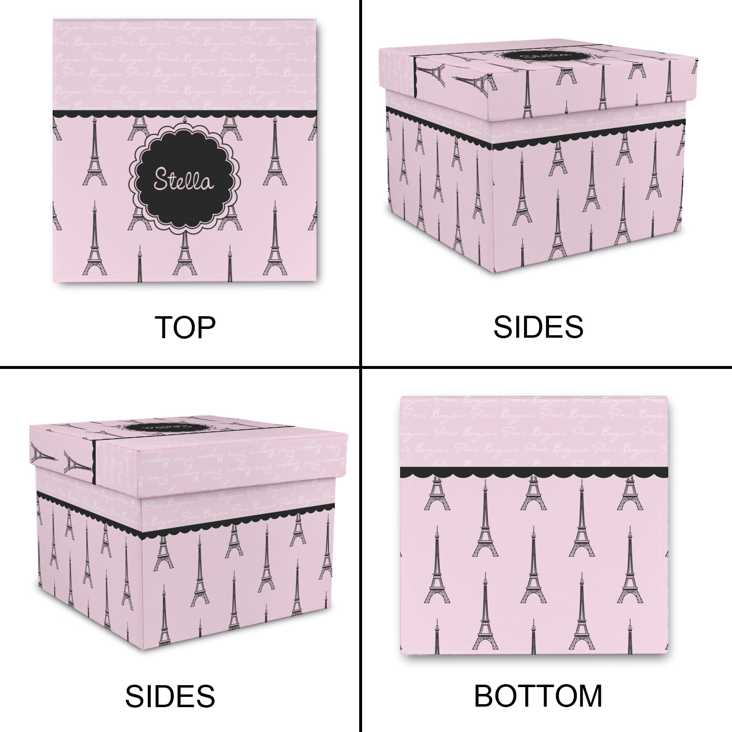 "Bonjour, Paris!" will be the first words spoken when you see this beautiful French inspired design. You will bring a bit of Parisian elegance to your decor when choosing this gorgeous French Eiffel Tower design set on a pretty pink backdrop. The beautiful black scalloped label on the whimsical pink highlights the personalization of your choice.