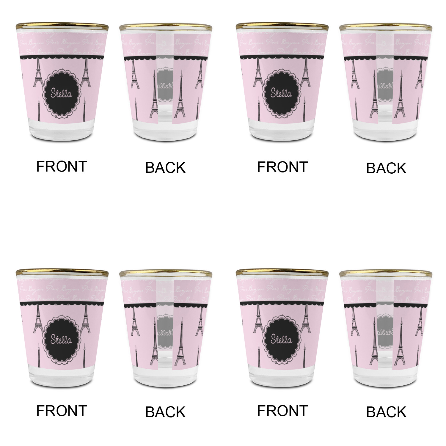Made with frosted glass, these shot glasses are printed in full color with the design of your choice. They are a standard 1.5oz shot glass and are 2.4" tall. The print is wrapped around the shot glass in a full wrap and boldly displays your customization.