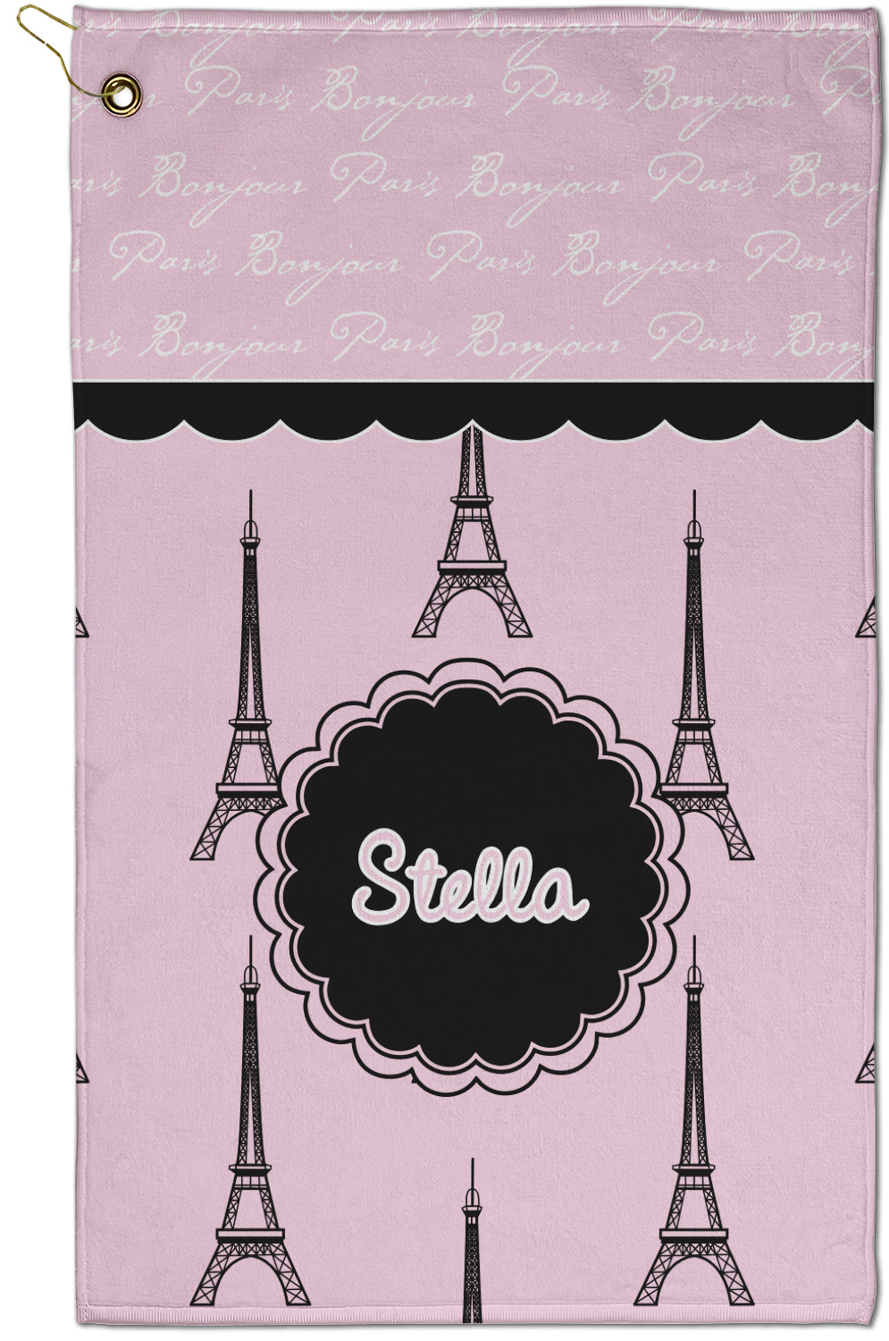 "Bonjour, Paris!" will be the first words spoken when you see this beautiful French inspired design. You will bring a bit of Parisian elegance to your decor when choosing this gorgeous French Eiffel Tower design set on a pretty pink backdrop. The beautiful black scalloped label on the whimsical pink highlights the personalization of your choice.