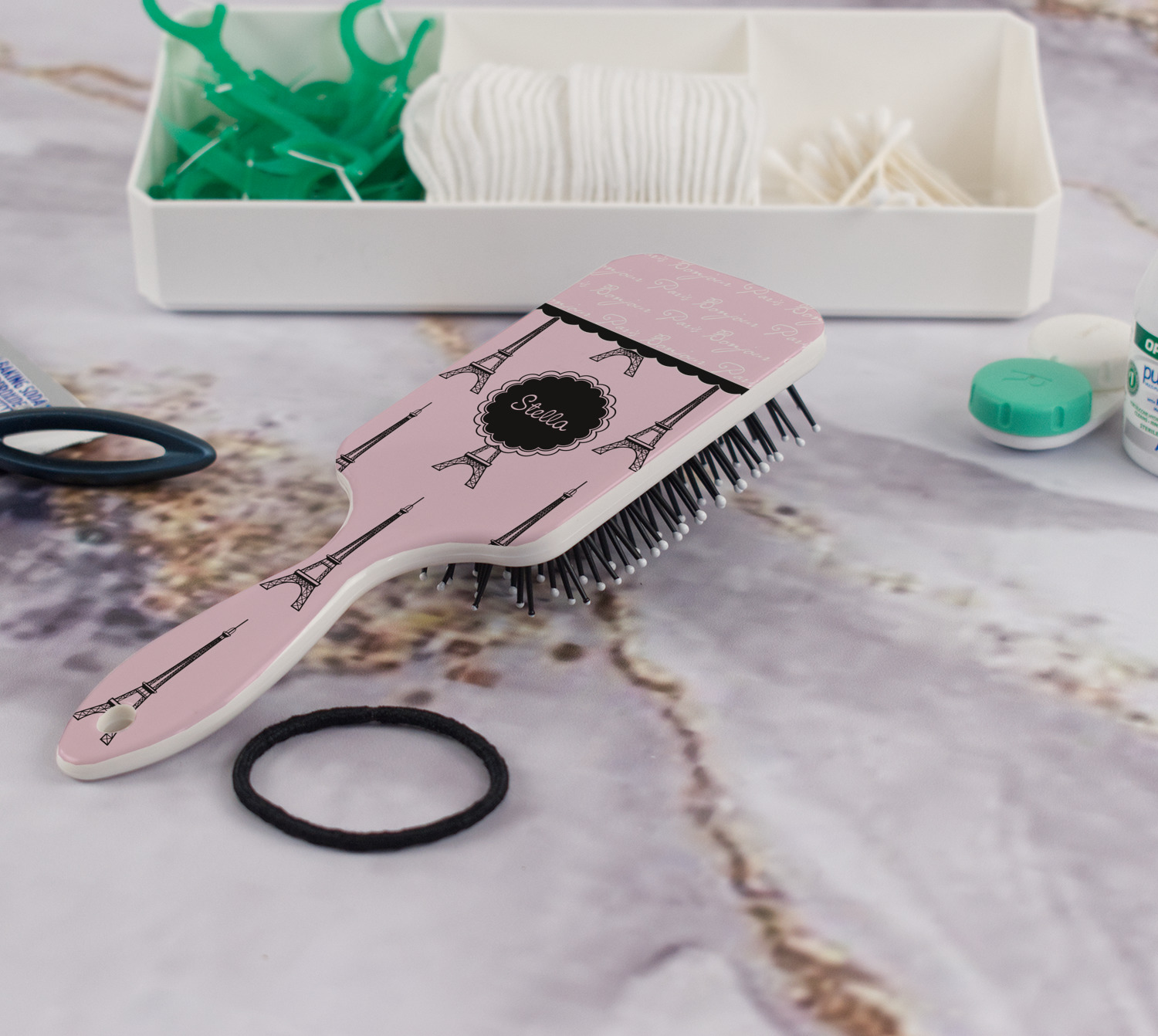 Our paddle style customizable hair brushes are perfect for all hair types- straight, curly, wavy, long, short, thick or textured.