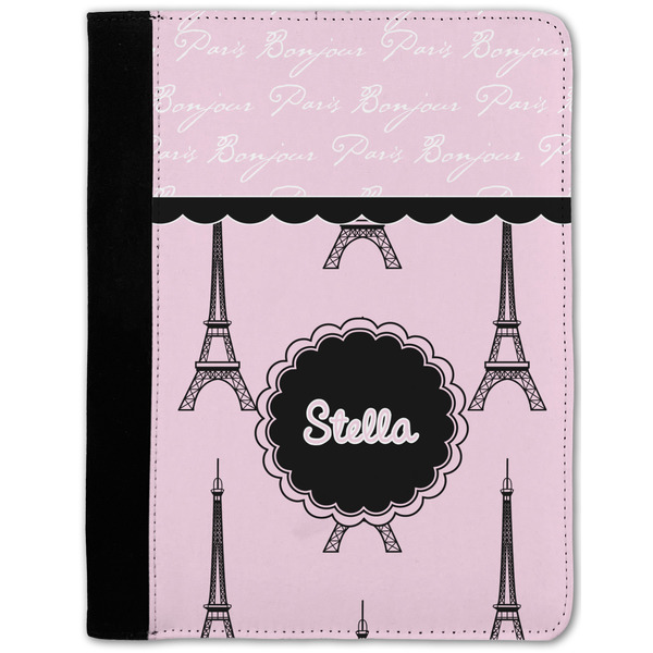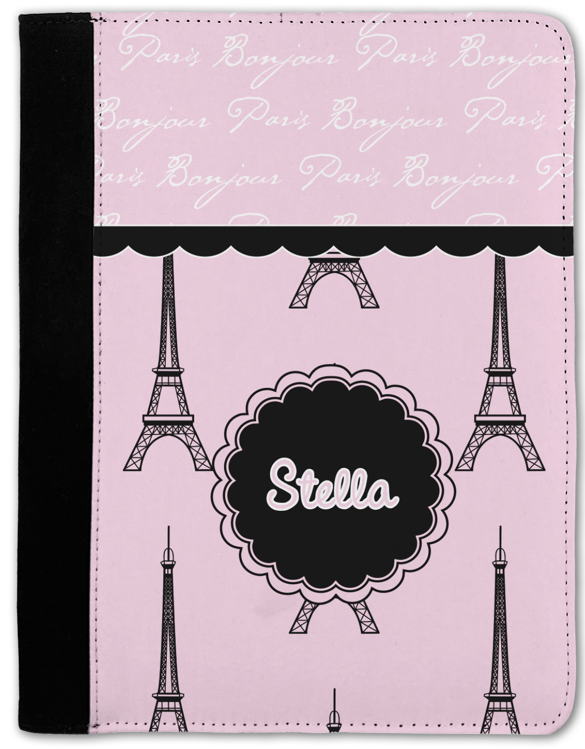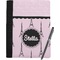 These personalized padfolios are made from a black, polyester microfiber and features a standard, 50-page notepad. However, these black padfolios can accommodate a pad with up to 100 pages. This model also features a slot pocket for any loose sheets of paper, small pockets for business cards, and an elastic band to secure a pen. We print your personalization across the front of this notepad portfolio in bright, vibrant color. These padfolios come in 2 sizes, Medium - approximately 10.25" x 8" for 5" x 8" paper and Large - approximately 12.5" x 8.5" for 8.5" x 11" paper.