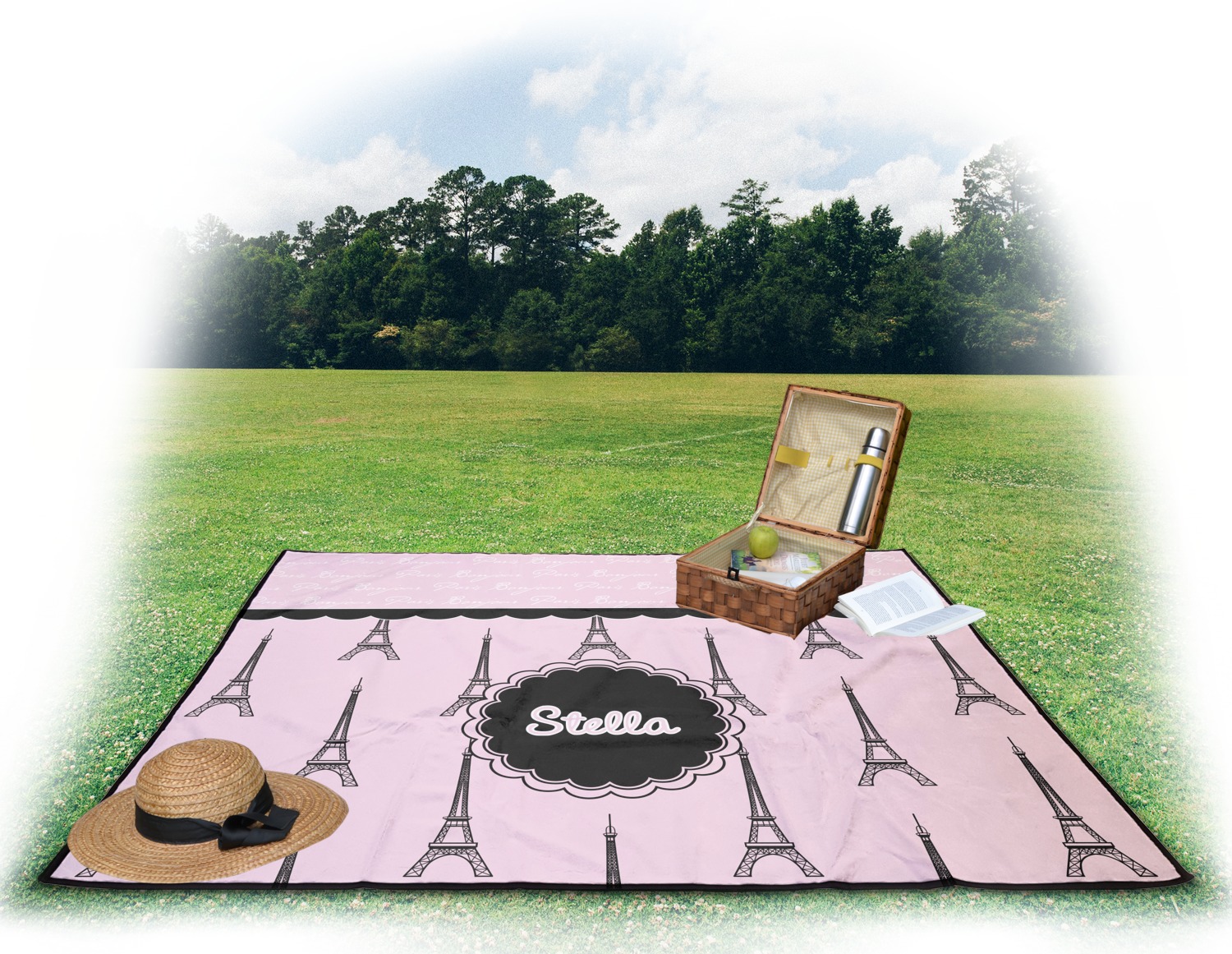 This picnic blanket is perfect for hanging out with your friends at the park or anywhere outside. The top of the blanket is made of a super soft microfiber fleece. The bottom of the blanket is made of a black material similar to a rain jacket and is water repellent as well. This will keep any wet spots on the ground from soaking through your picnic blanket. No one likes a wet blanket. The blanket measures at approximately 50" x 59" and has a nicely finished ribbon edge.