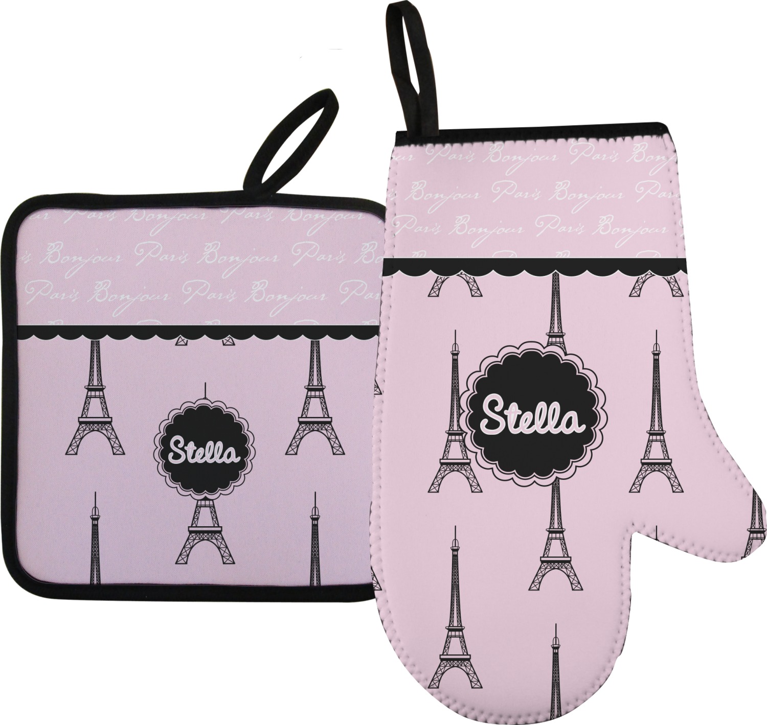 "Bonjour, Paris!" will be the first words spoken when you see this beautiful French inspired design. You will bring a bit of Parisian elegance to your decor when choosing this gorgeous French Eiffel Tower design set on a pretty pink backdrop. The beautiful black scalloped label on the whimsical pink highlights the personalization of your choice.