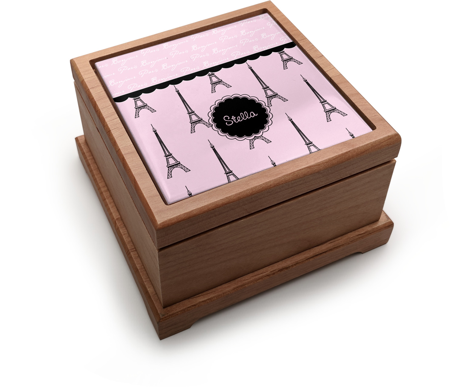 "Bonjour, Paris!" will be the first words spoken when you see this beautiful French inspired design. You will bring a bit of Parisian elegance to your decor when choosing this gorgeous French Eiffel Tower design set on a pretty pink backdrop. The beautiful black scalloped label on the whimsical pink highlights the personalization of your choice.