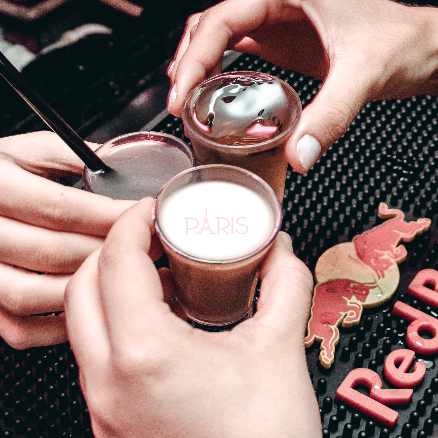 Your customized drink toppers can be placed on top of cold or hot beverages such as cocktails, beer, wine, champagne, soda, water, ice tea, nitro cold brew, milkshakes, smoothies to hot tea, coffee, lattes, espressos etc. It is recommended that these toppers be placed on top of a foam layer for best results.