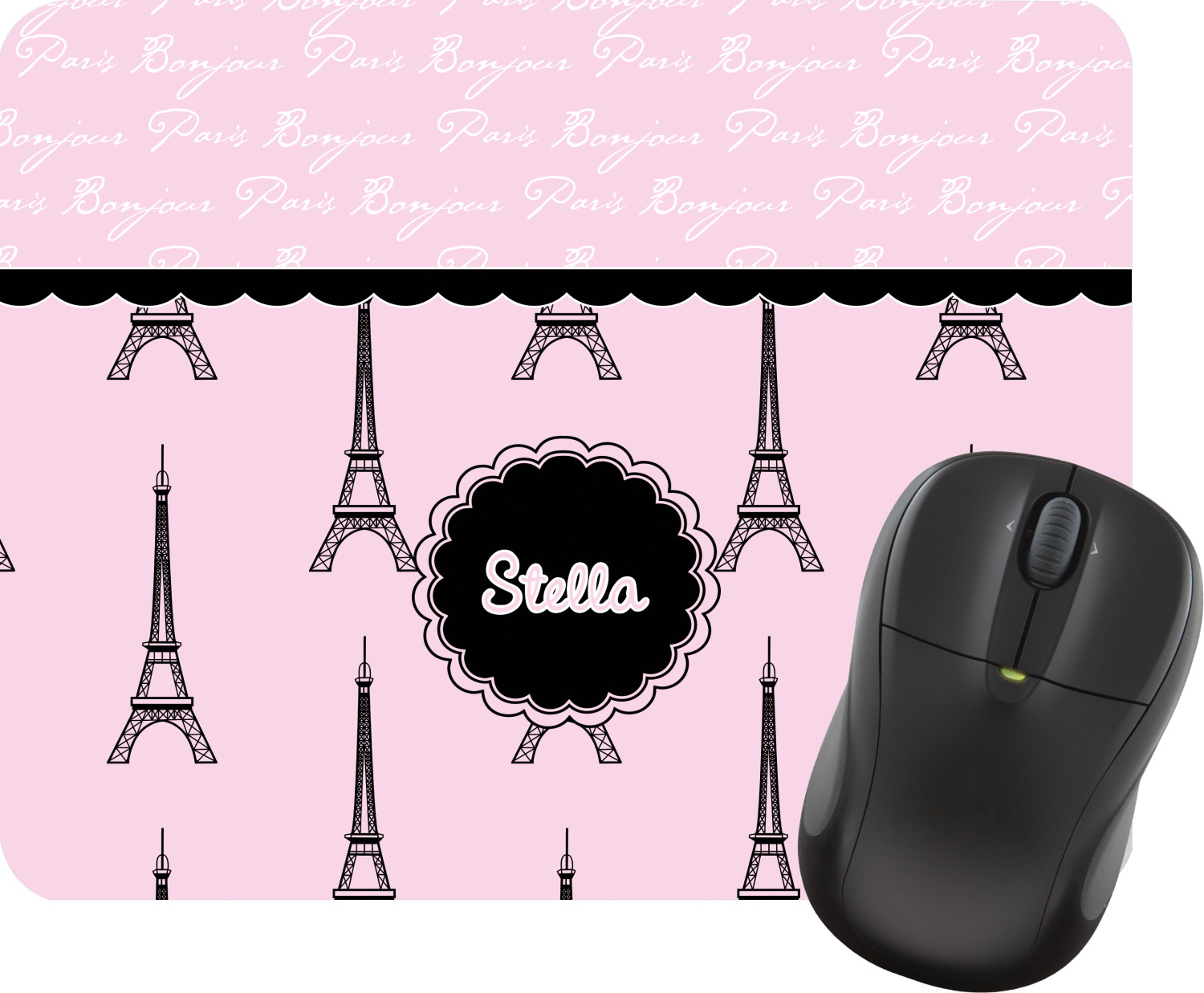 "Bonjour, Paris!" will be the first words spoken when you see this beautiful French inspired design. You will bring a bit of Parisian elegance to your decor when choosing this gorgeous French Eiffel Tower design set on a pretty pink backdrop. The beautiful black scalloped label on the whimsical pink highlights the personalization of your choice.