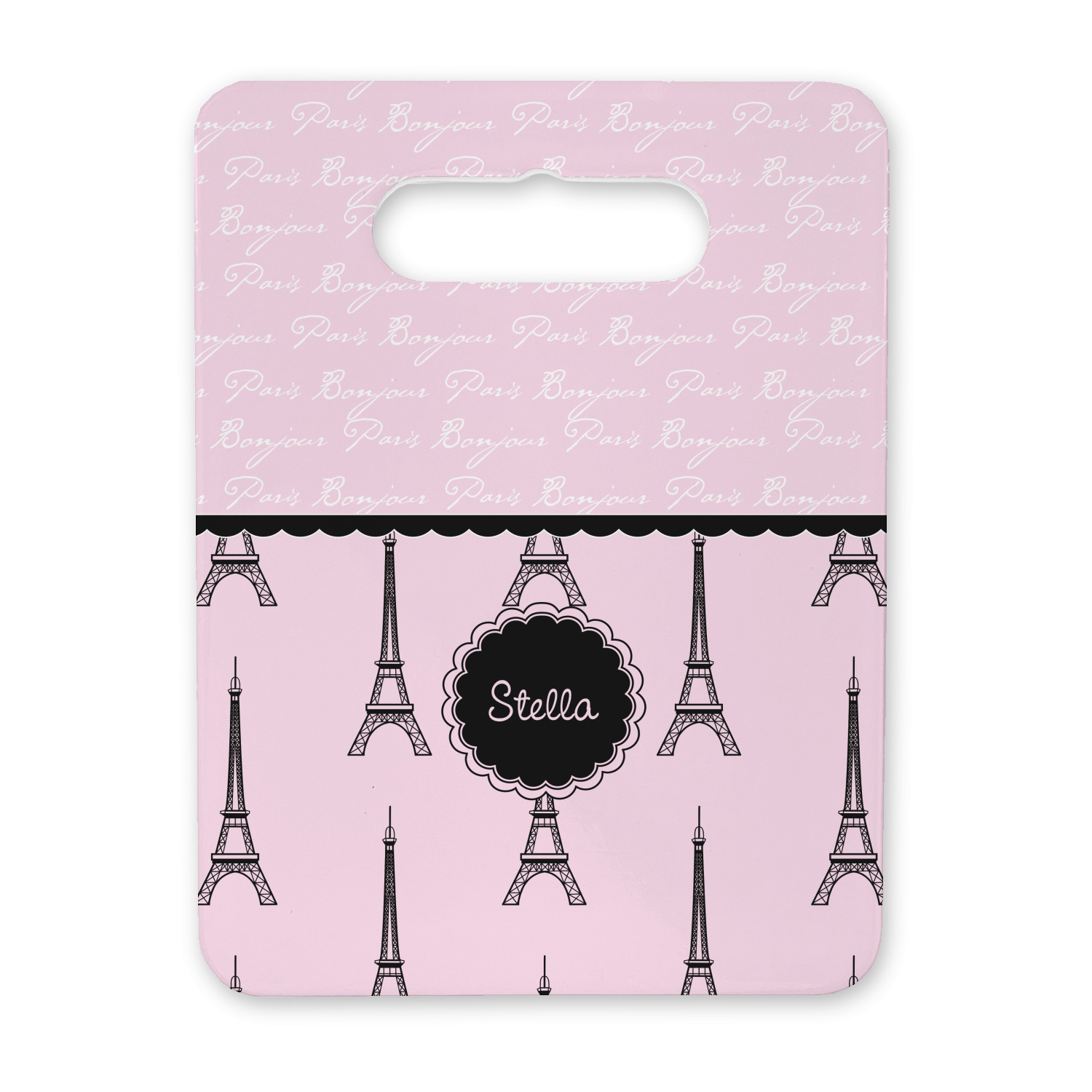 "Bonjour, Paris!" will be the first words spoken when you see this beautiful French inspired design. You will bring a bit of Parisian elegance to your decor when choosing this gorgeous French Eiffel Tower design set on a pretty pink backdrop. The beautiful black scalloped label on the whimsical pink highlights the personalization of your choice.