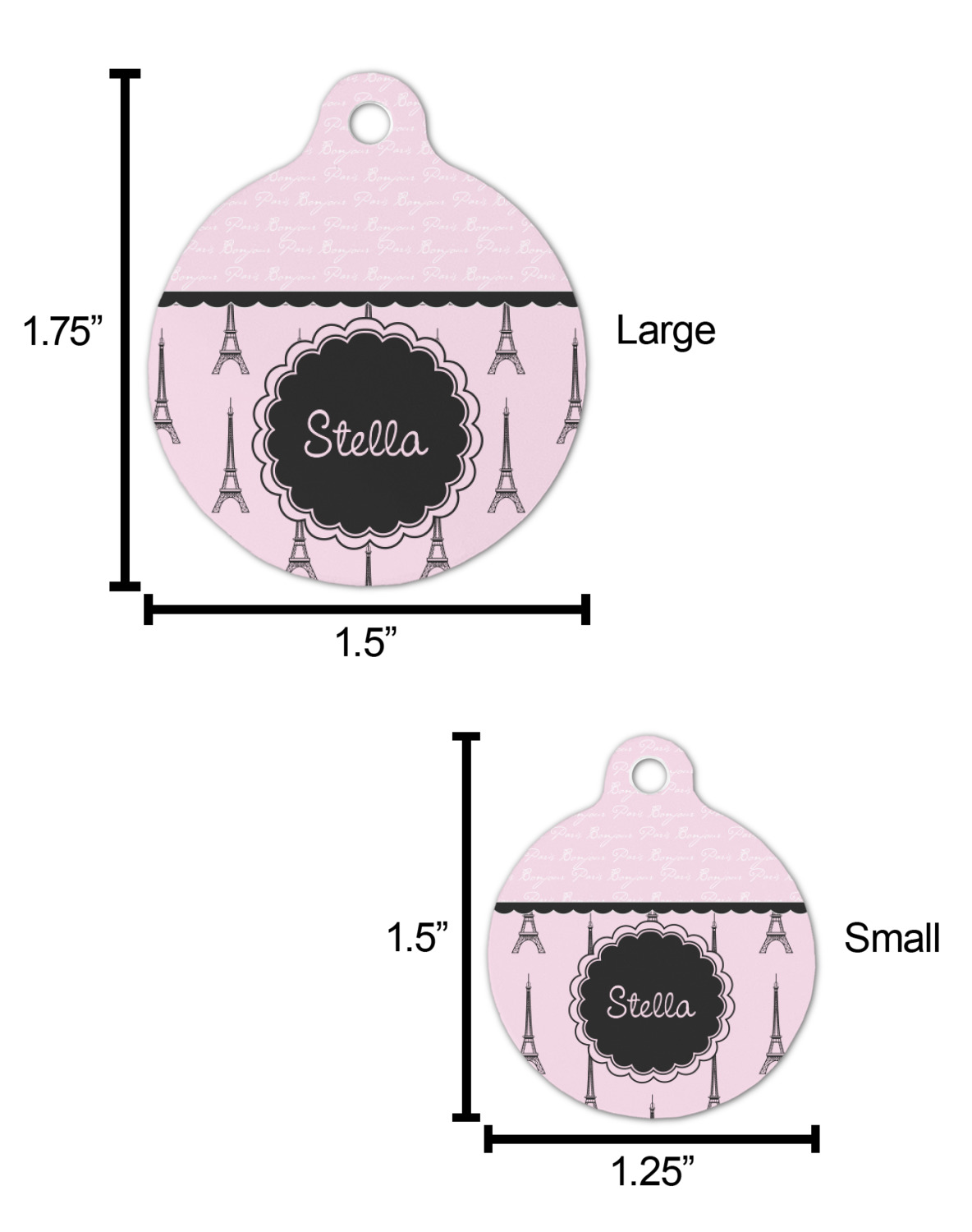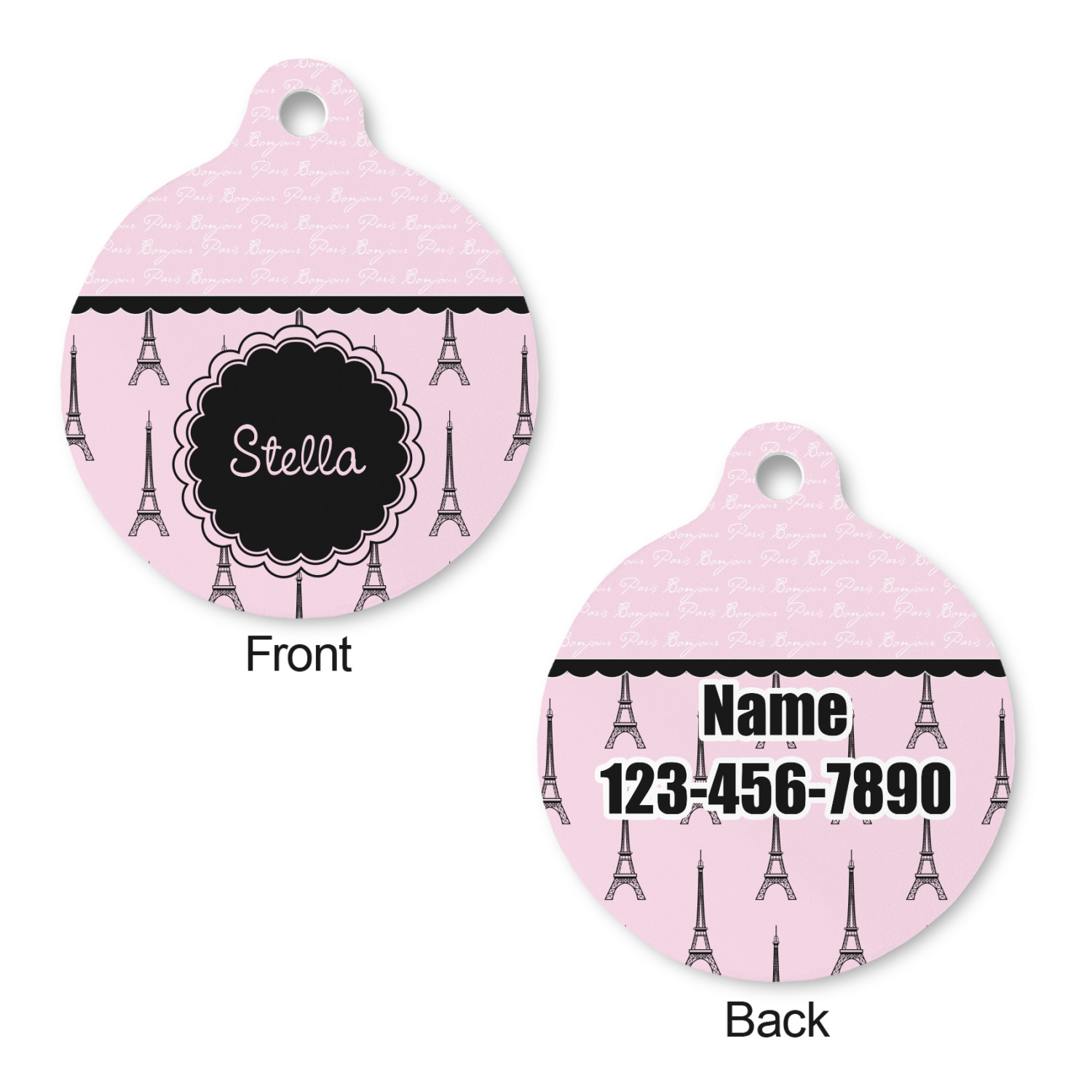Go ahead; skip the monotony of plain pet ID tags with your very own, customized & personalized, round pet tag! This pet ID tag, fitting for both cats and dogs, will catch the eye of any onlooker (humans, canines, and felines, alike!) and accentuate your pet's individual personality.
