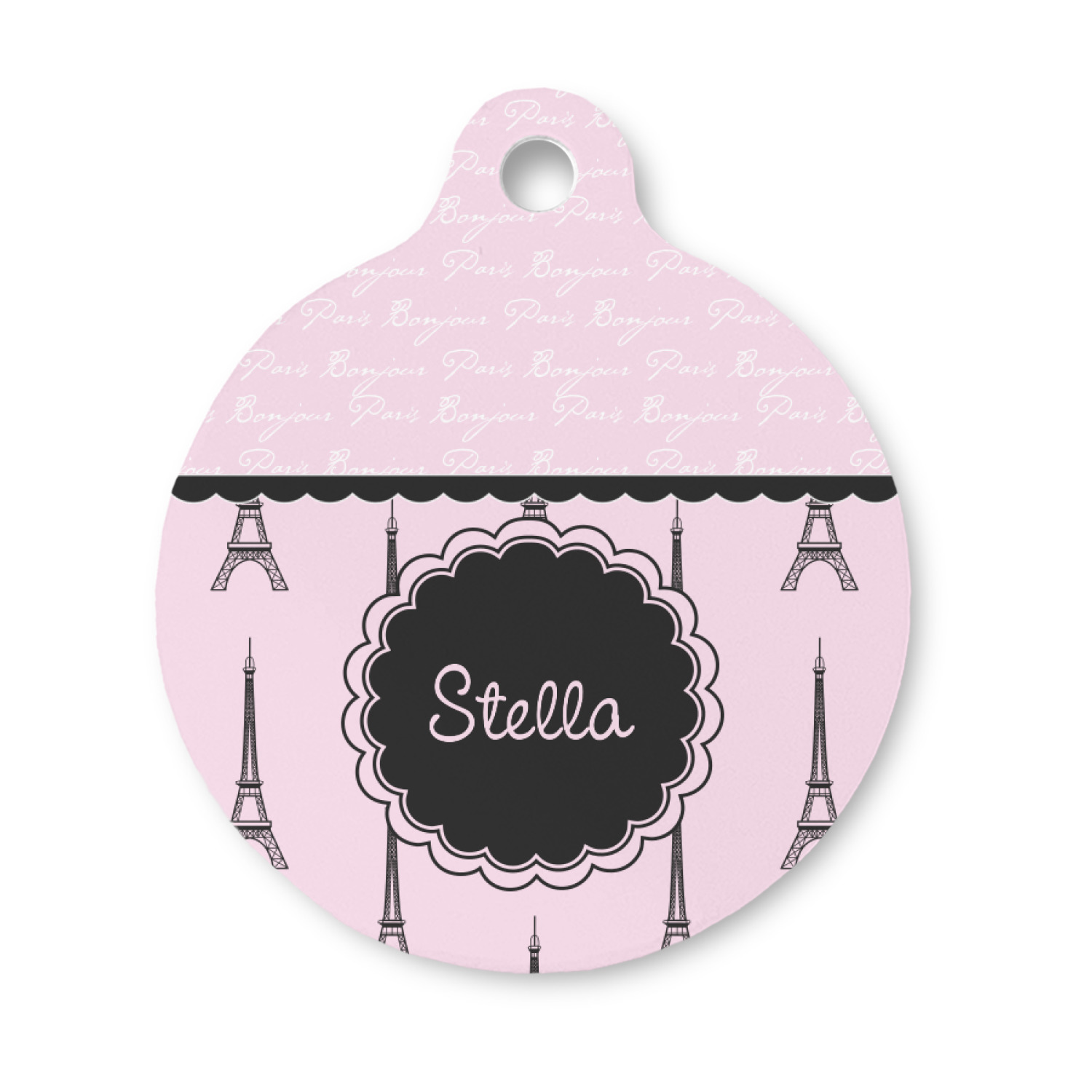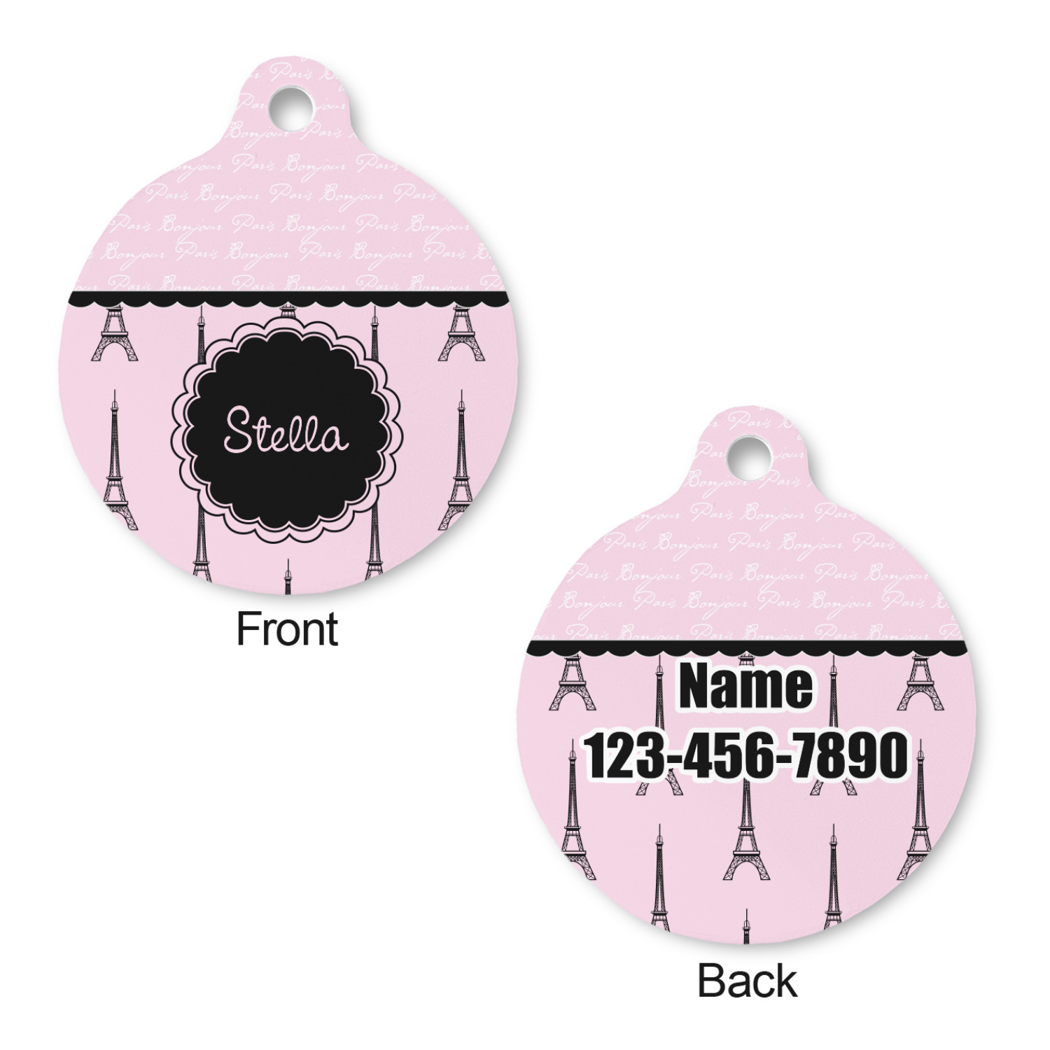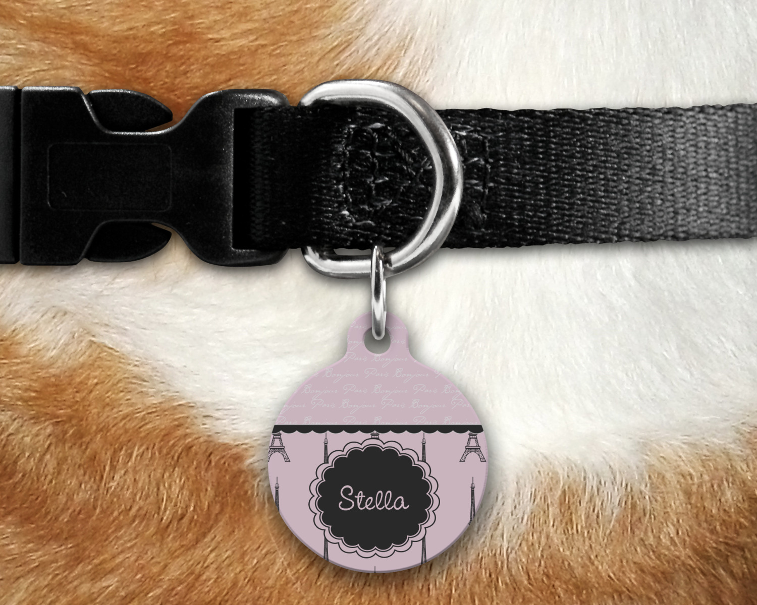 Go ahead; skip the monotony of plain pet ID tags with your very own, customized & personalized, round pet tag! This pet ID tag, fitting for both cats and dogs, will catch the eye of any onlooker (humans, canines, and felines, alike!) and accentuate your pet's individual personality.