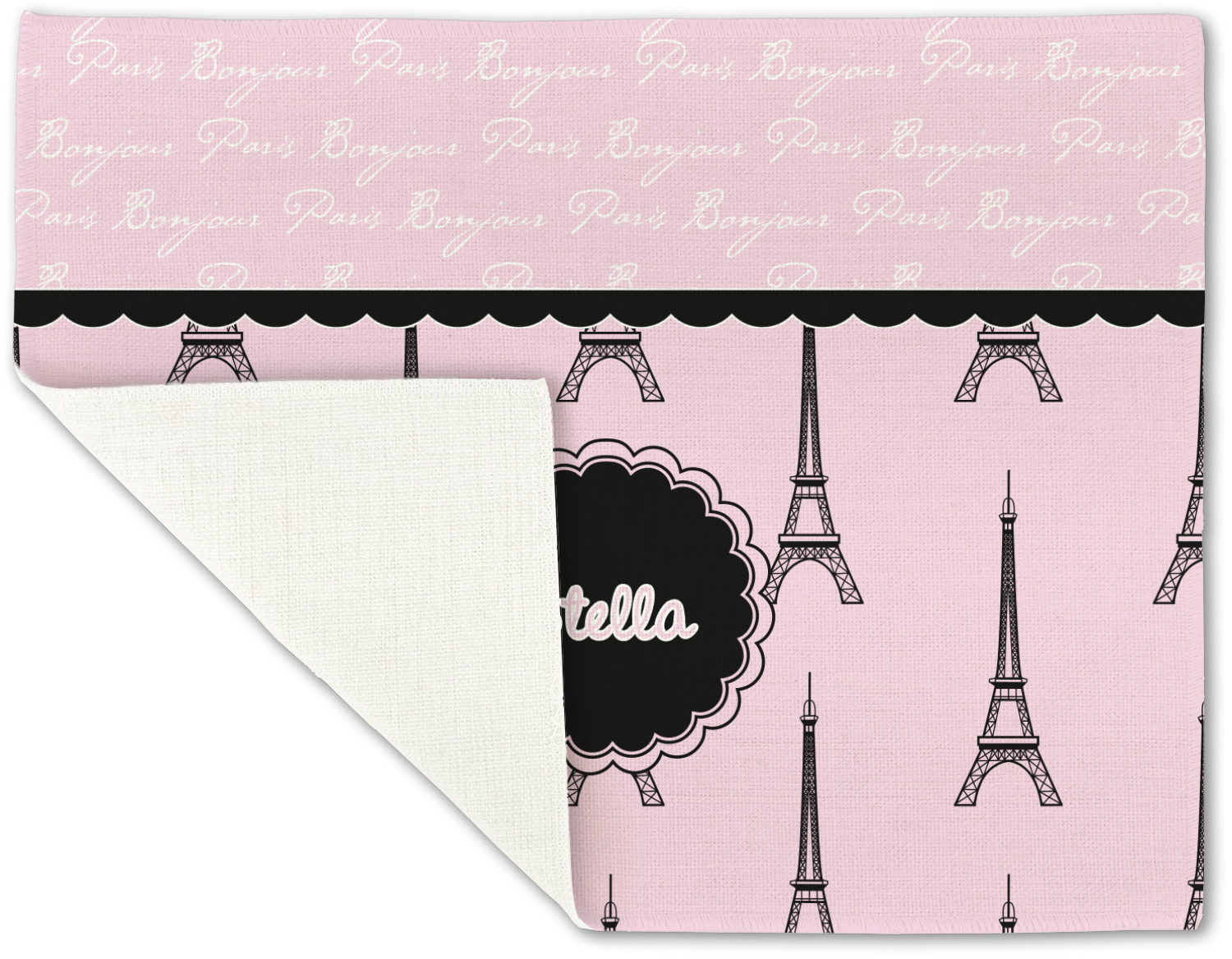 "Bonjour, Paris!" will be the first words spoken when you see this beautiful French inspired design. You will bring a bit of Parisian elegance to your decor when choosing this gorgeous French Eiffel Tower design set on a pretty pink backdrop. The beautiful black scalloped label on the whimsical pink highlights the personalization of your choice.