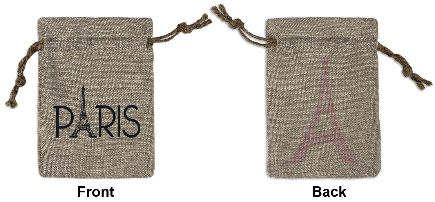 We sell our Burlap Gift Bags in 3 variant sized bags. Made with burlap polyester, each personalized bag can be secured with a twine drawstring pull. Your custom design is available to print on one side or both sides - completely up to you! The sizes of the bags measure approximately 4.5" x 6.5" for the smallest size, 6.5" x 8.0" for the medium size, and 6.5" x 13.5" for the large-sized bag.