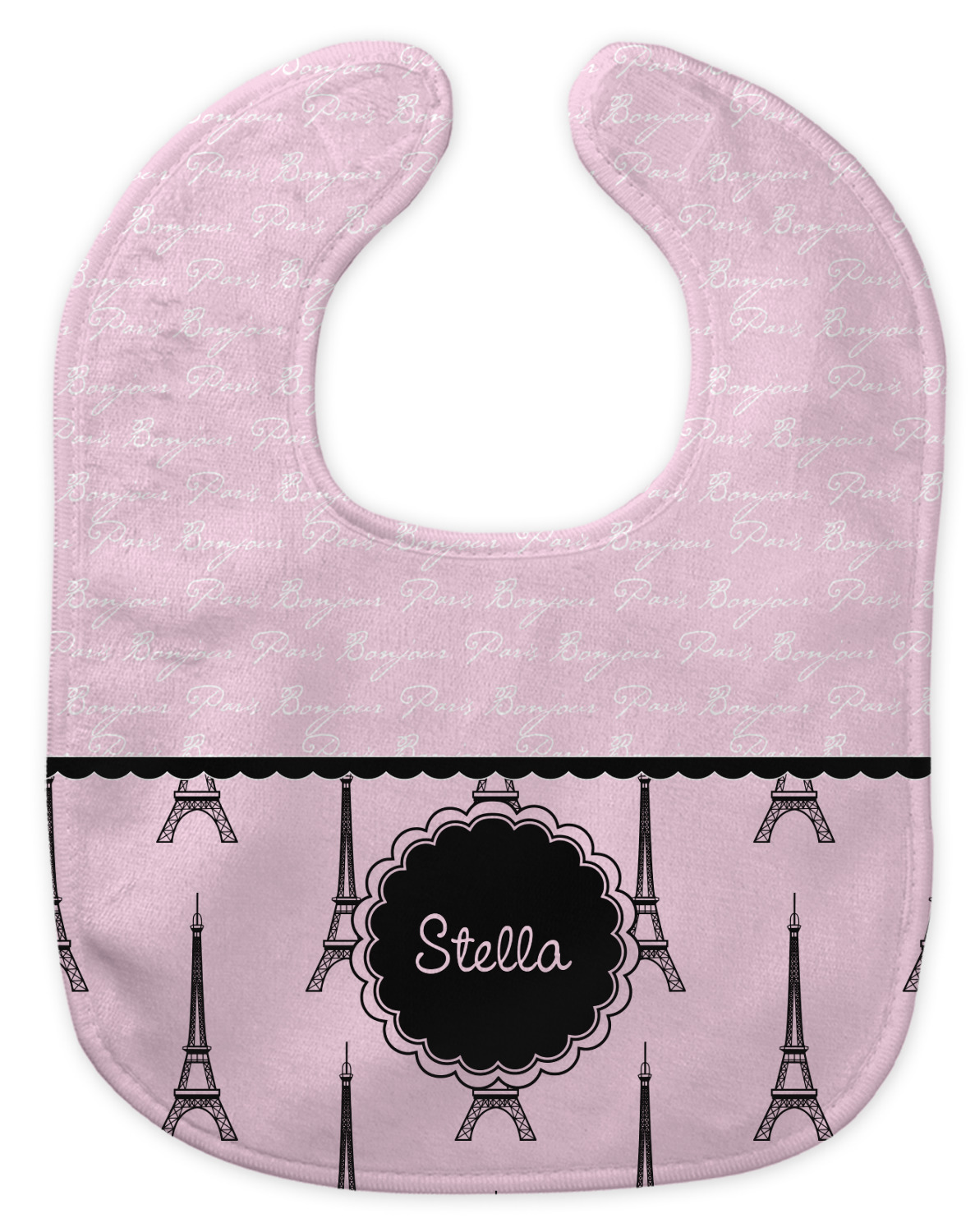 "Bonjour, Paris!" will be the first words spoken when you see this beautiful French inspired design. You will bring a bit of Parisian elegance to your decor when choosing this gorgeous French Eiffel Tower design set on a pretty pink backdrop. The beautiful black scalloped label on the whimsical pink highlights the personalization of your choice.