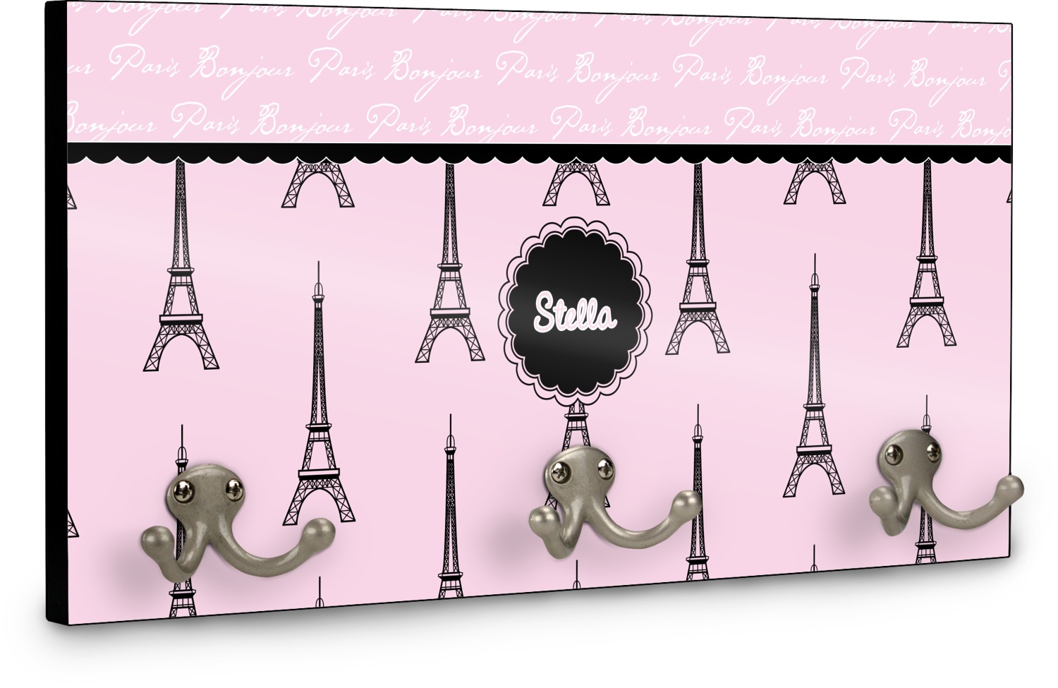 "Bonjour, Paris!" will be the first words spoken when you see this beautiful French inspired design. You will bring a bit of Parisian elegance to your decor when choosing this gorgeous French Eiffel Tower design set on a pretty pink backdrop. The beautiful black scalloped label on the whimsical pink highlights the personalization of your choice.