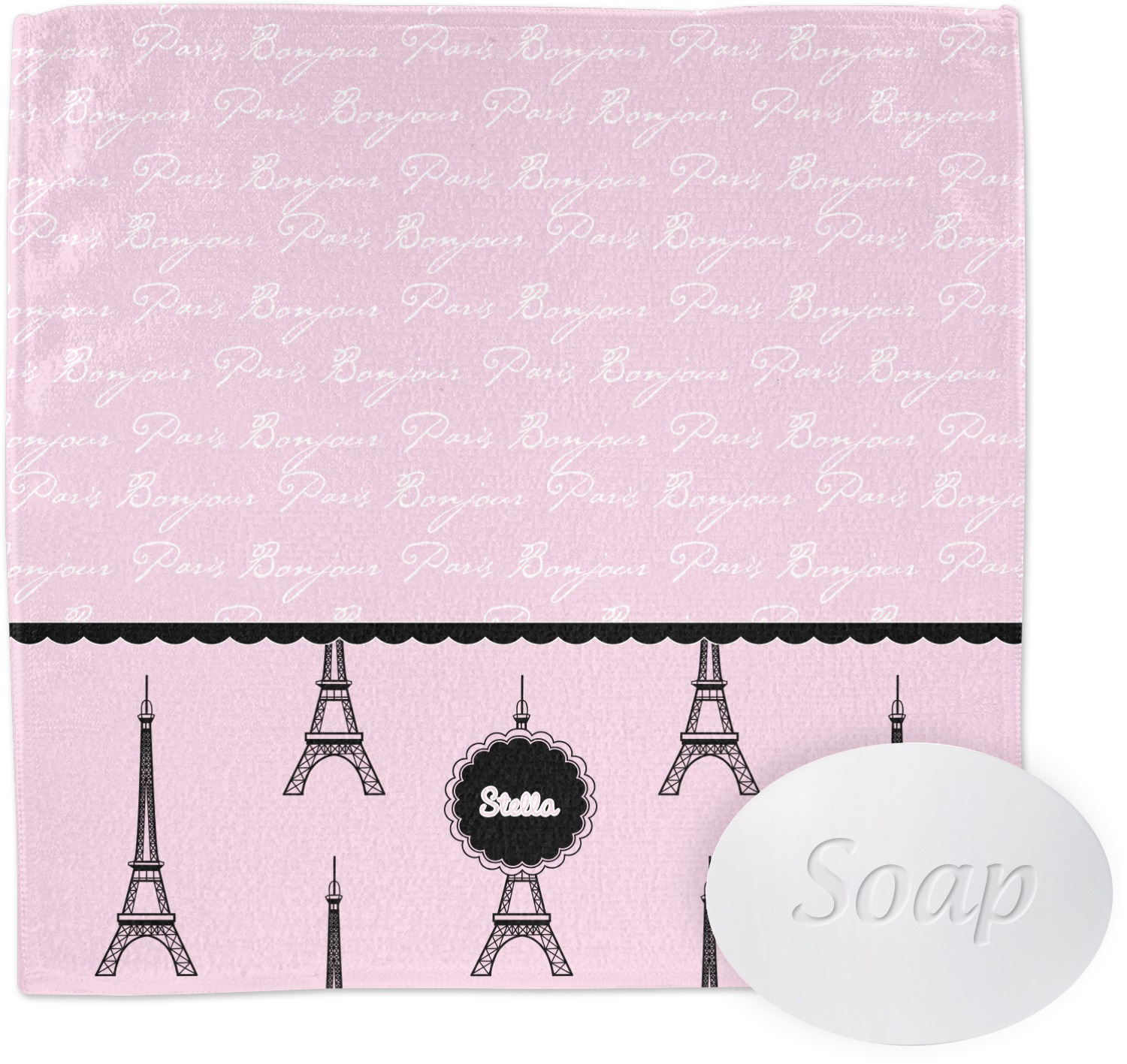 "Bonjour, Paris!" will be the first words spoken when you see this beautiful French inspired design. You will bring a bit of Parisian elegance to your decor when choosing this gorgeous French Eiffel Tower design set on a pretty pink backdrop. The beautiful black scalloped label on the whimsical pink highlights the personalization of your choice.