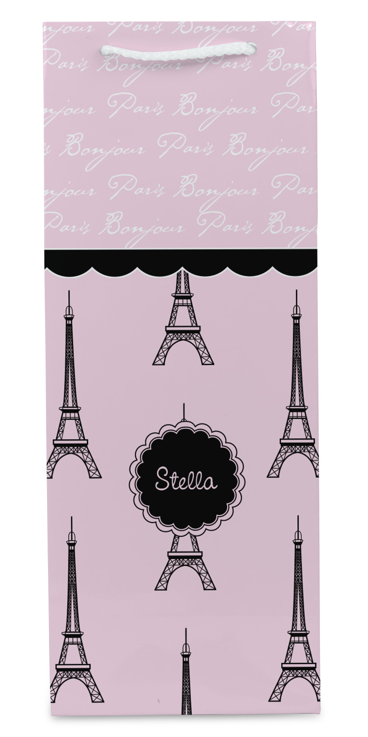 "Bonjour, Paris!" will be the first words spoken when you see this beautiful French inspired design. You will bring a bit of Parisian elegance to your decor when choosing this gorgeous French Eiffel Tower design set on a pretty pink backdrop. The beautiful black scalloped label on the whimsical pink highlights the personalization of your choice.