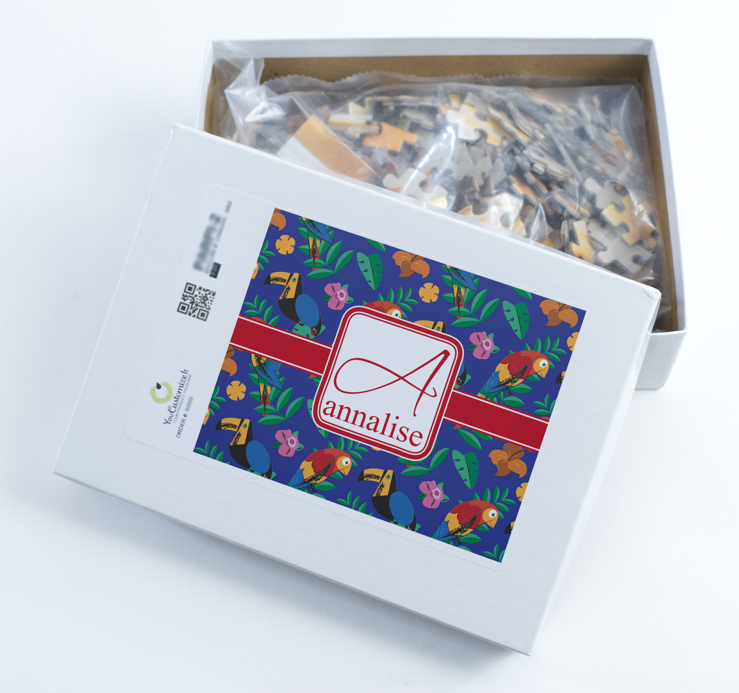 You can also upload your logo or art that you or your kids drew. To create more challenging jigsaw puzzles, you can create a pattern from with your logo or artwork. You can also add other elements such as text or personalization.