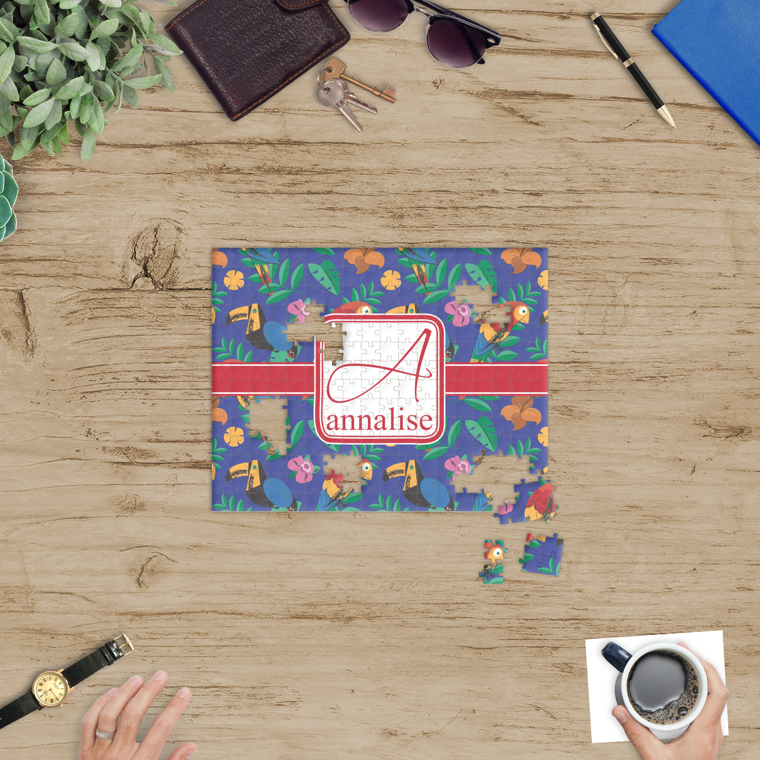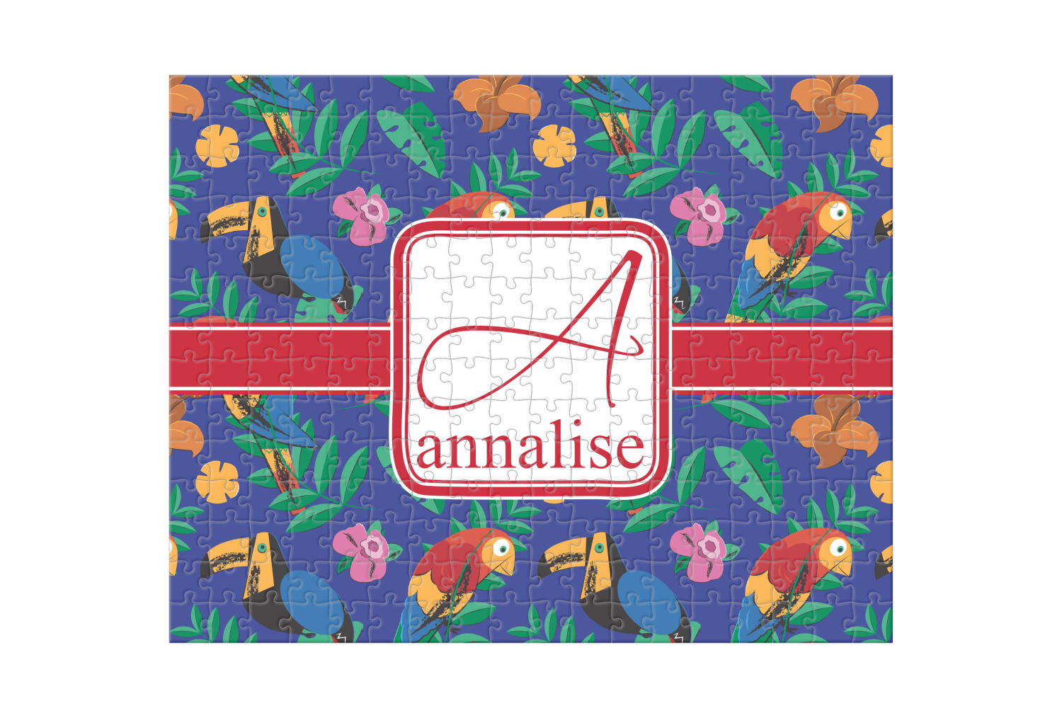 Depending on the look you are trying to achieve, you can add; a thematic pattern or background, with a photo in a frame and text or personalization to your puzzle. Basically if you can imagine it, you can design it!