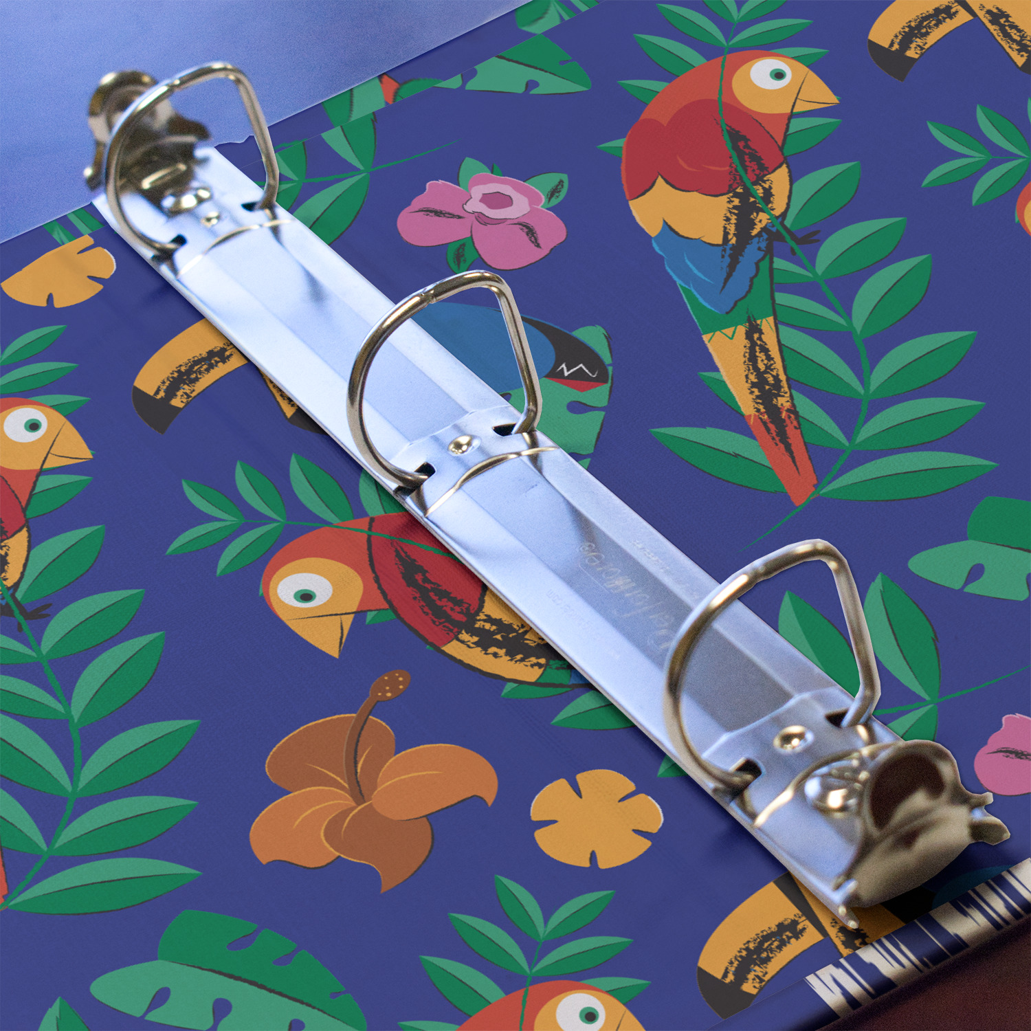 Made from a sturdy cardboard base with a full high quality canvas textured vinyl wrap with the design of your choice. Unlike our standard 3-ring binder with the full wrap design your artwork wraps from the front and back and into the inside of the binder.
