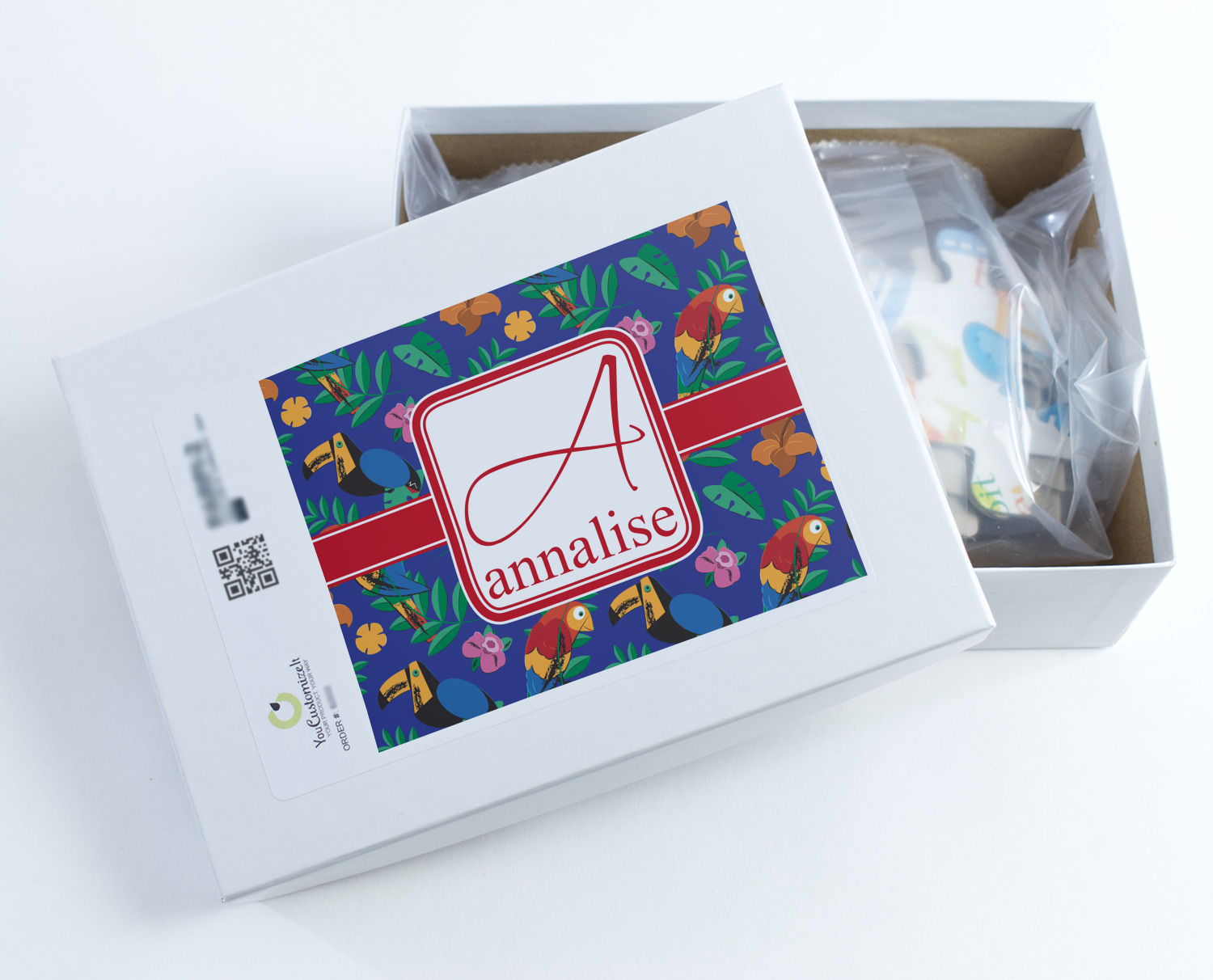 We print our puzzles on thick white chipboard in vibrant colors, then laminate the chipboard and die cut your puzzle. Your jigsaw puzzle is shipped to you in a box with the image of the puzzle on the box.