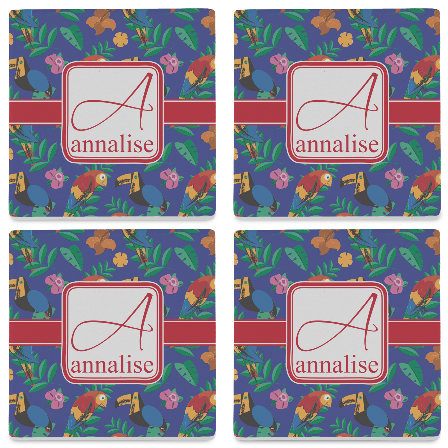 By default, the 4 coasters all have the same design on them, however, you can change that and have a different design on each one of the 4 coasters. The choice is yours.