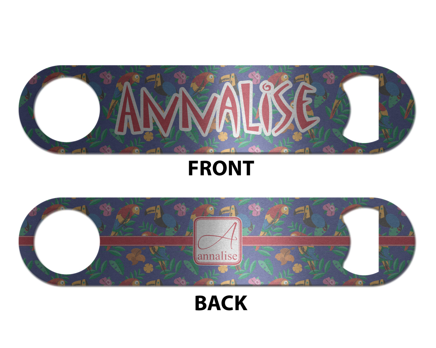 Stop struggling with the caps or your bottled beverages by purchasing one of our personalized bottle openers! These wrench-like custom bar blades are built to last. Customize one for your home's bar, or as a practical gift for a loved one!
