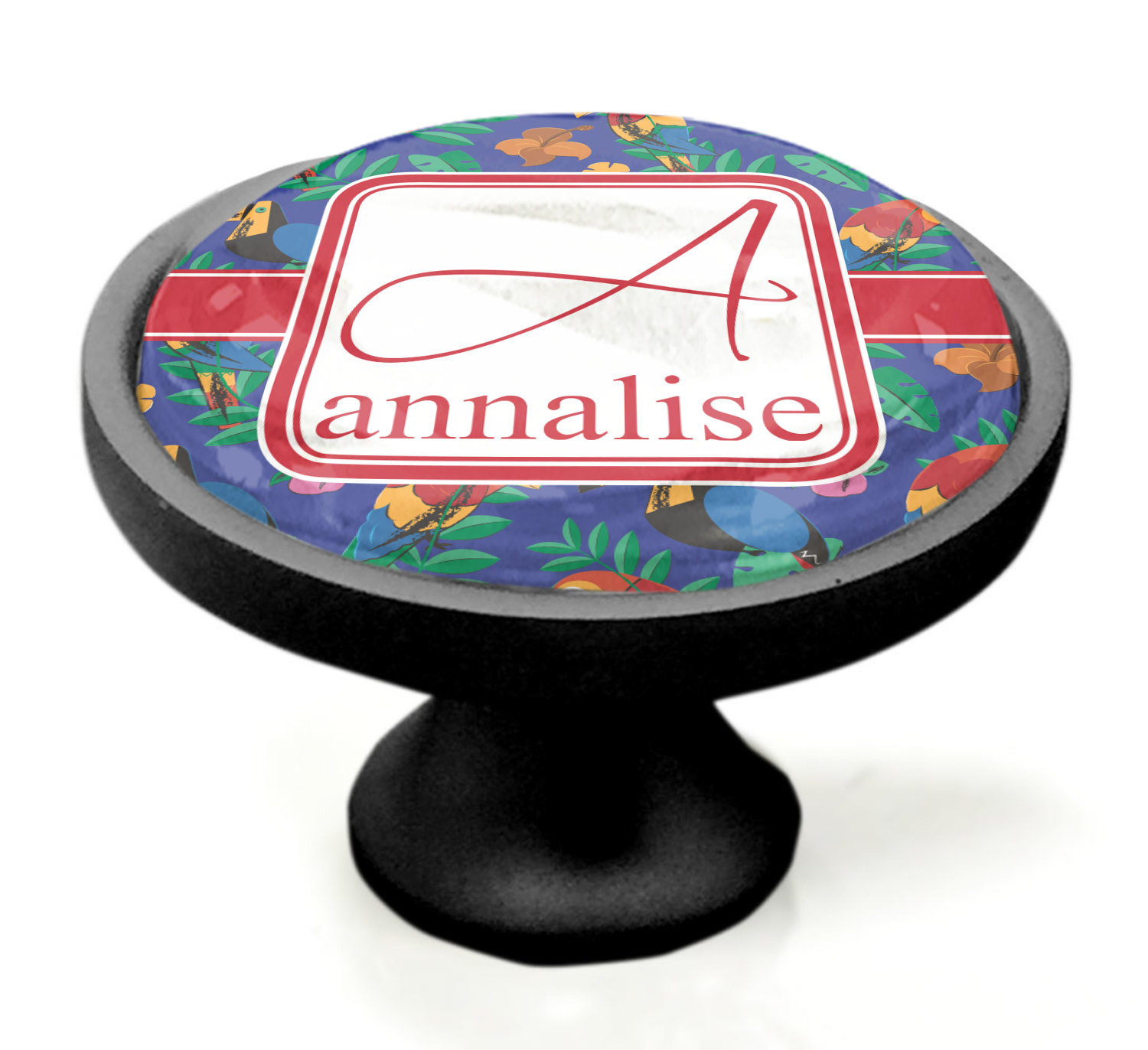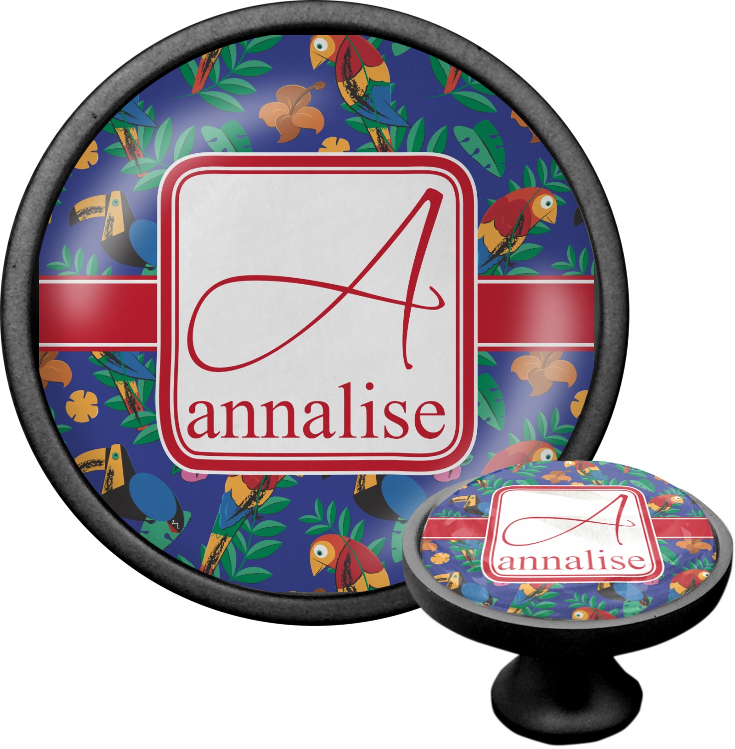 We sell these cabinet pulls in two different colors to better match your room's color scheme. We offer an oil-rubbed bronze base that is black in color, and a satin nickel option, which has a silver color. Your design is displayed across a high gloss vinyl insert that is placed on top of these cabinet handles. We then place a 1 inch thick glass cabochon atop the design, which seals the cabinet knob and makes the colors of your customization stand out. These custom cabinet knobs are approximately 1.3 inches in diameter. Your purchase includes a 1 inch screw that can be used to mount the knob to any cabinet in your home.