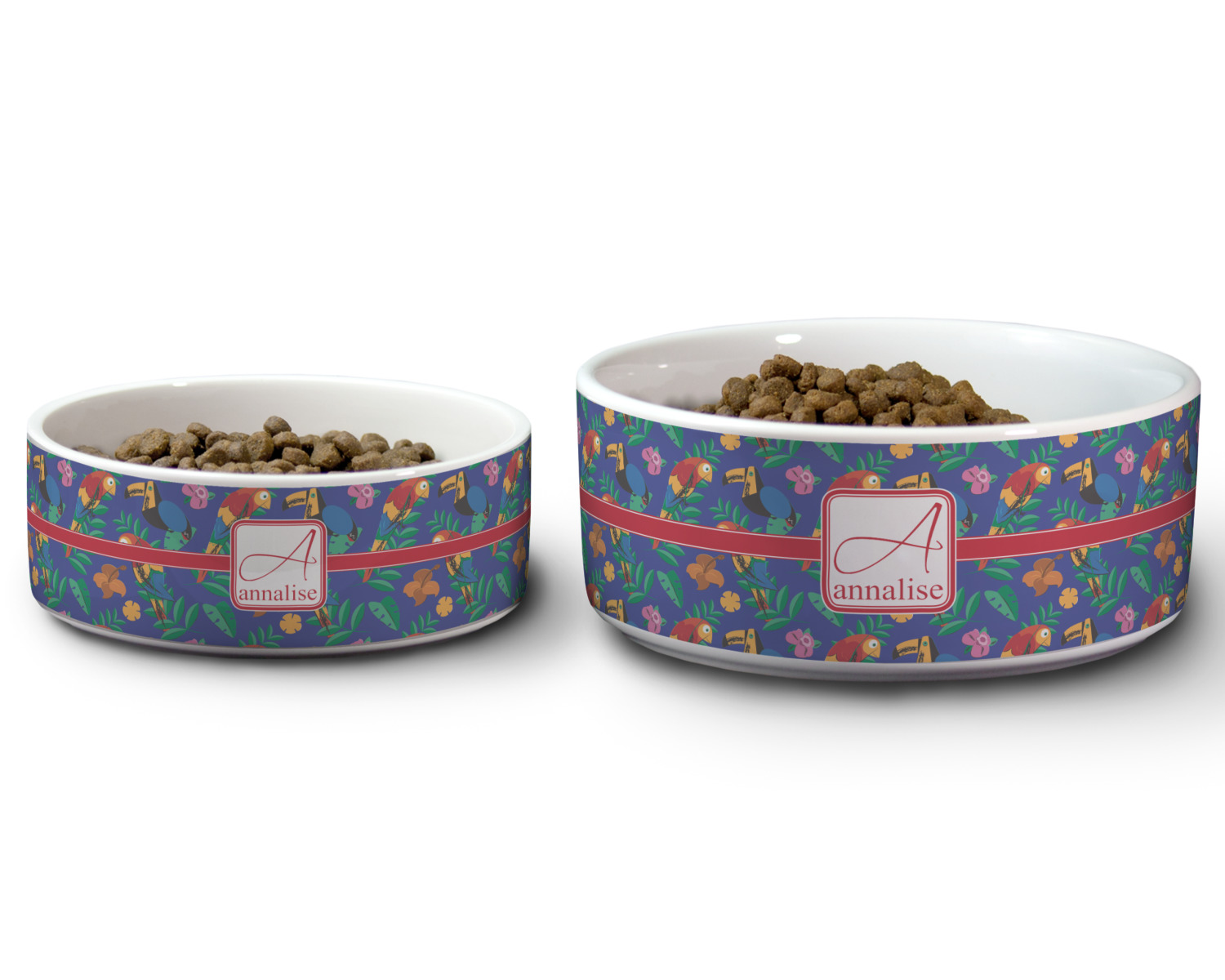 Our customized, ceramic dog bowls allow you to fashion a durable, yet expressive gift for your pet. These bowls are fashionably versatile; they suit both cats and dogs and can hold either food or water. Add your pet's name or favorite color to the design, and spruce up his/her eating area with one or two personalized pet bowls!