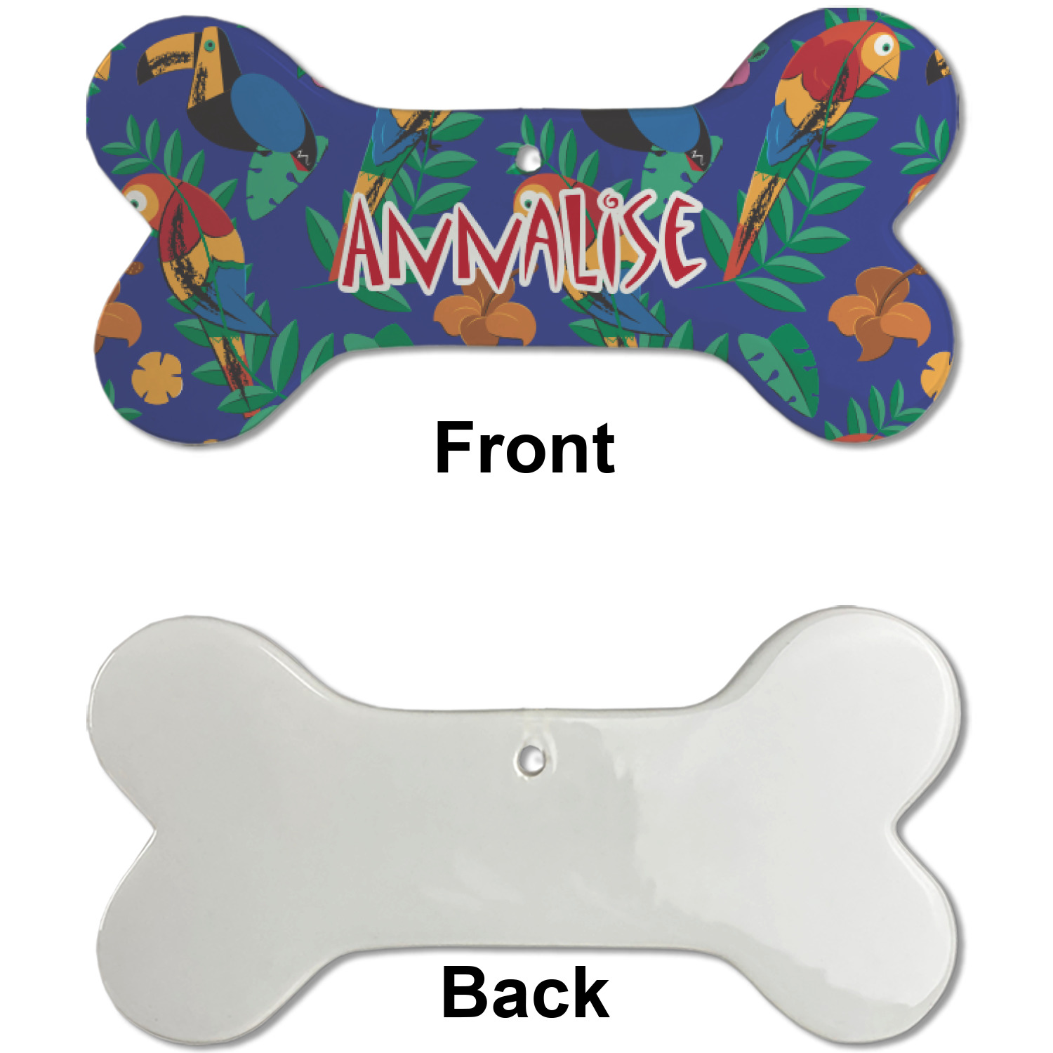 Our dog Christmas ornaments are a ceramic material with a bone-shaped structure hung horizontally. We offer two printing styles to personalize your furry friend's ornament! Choose a one-sided printing, perfect for wall decor, memorial accessory, or doghouse nameplate! Create a double-sided ornament perfect for adorning the Christmas tree. Each dog bone ornament is approximately 4.75" x 2.25" and is printed here in the USA.