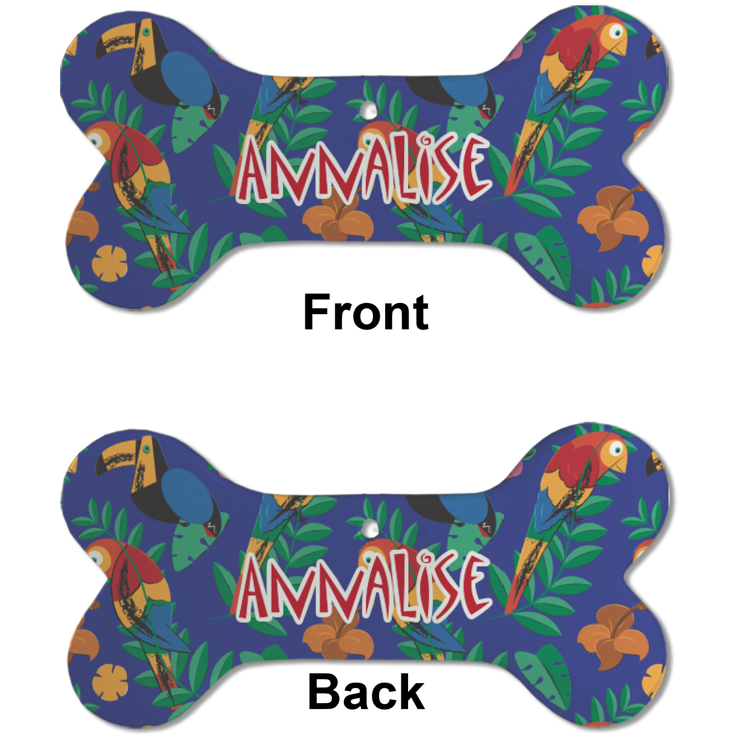 Our dog Christmas ornaments are a ceramic material with a bone-shaped structure hung horizontally. We offer two printing styles to personalize your furry friend's ornament! Choose a one-sided printing, perfect for wall decor, memorial accessory, or doghouse nameplate! Create a double-sided ornament perfect for adorning the Christmas tree. Each dog bone ornament is approximately 4.75" x 2.25" and is printed here in the USA.