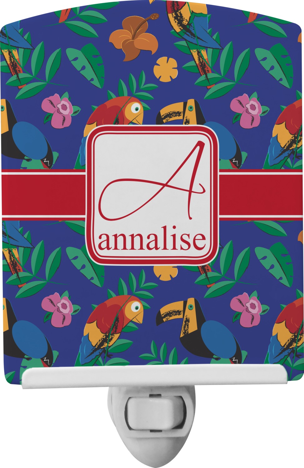 This baby night light is made of durable, ceramic plate that displays your customized design beneath a glossy finish. When this light is turned on, your personalization glows in the dark and offers a bit of light to any room or hallway. The plate also rotates easily. This plug-in night light has a white base with a convenient on and off switch. Additionally, the rotating plug allows you to plug them into US sockets horizontally or vertically. If your child outgrows the design years into the future, you can easily unscrew the plate and use it as a plain nightlight. With your purchase of this outlet night light, we include a 7-watt bulb.