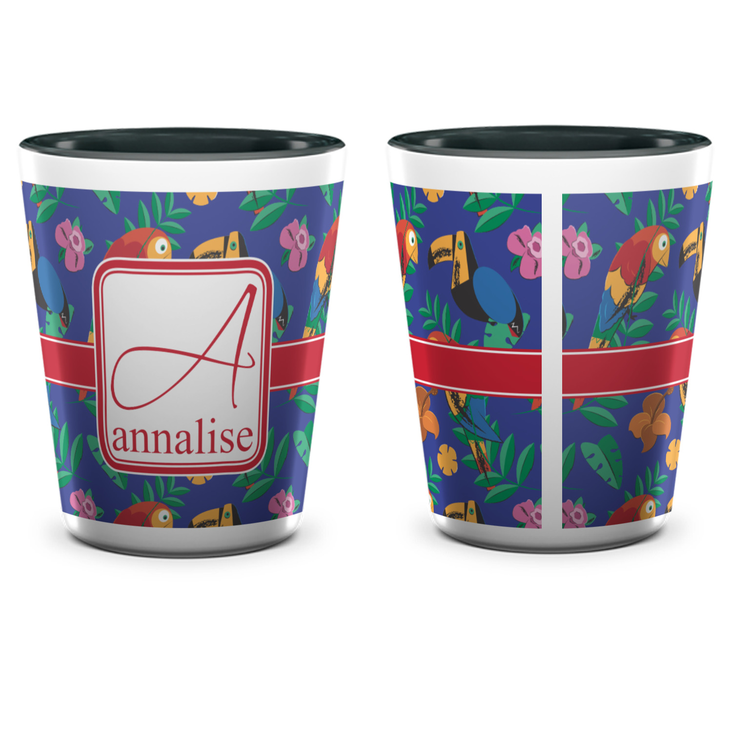 Made from ceramic these shot glasses are printed in full color with the design of your choice. These are a standard 1.5oz size and stand 2.25" tall. Available in a full white ceramic or a two-tone with a black color inside the shot glass. Buy a single or a set of 4, all of which can be designed separately to get you just what you want and need.